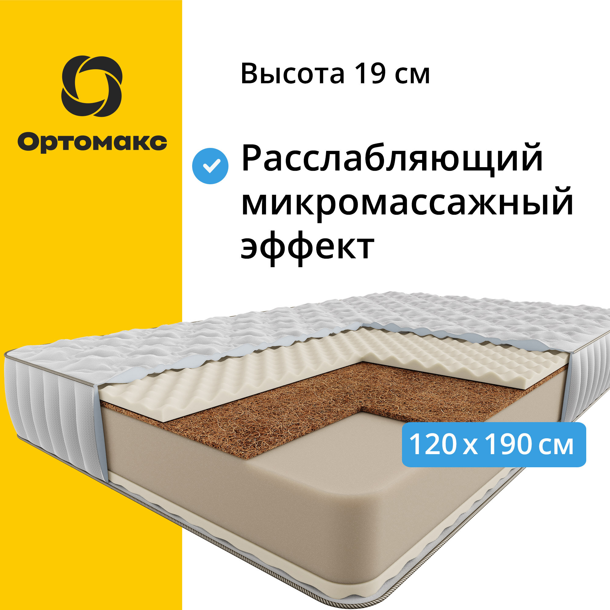 Матрас Ортомакс Premium Massage Cocos 120х190х29 (полутораспальный), беспружинный, премиальный, с массажным эффектом