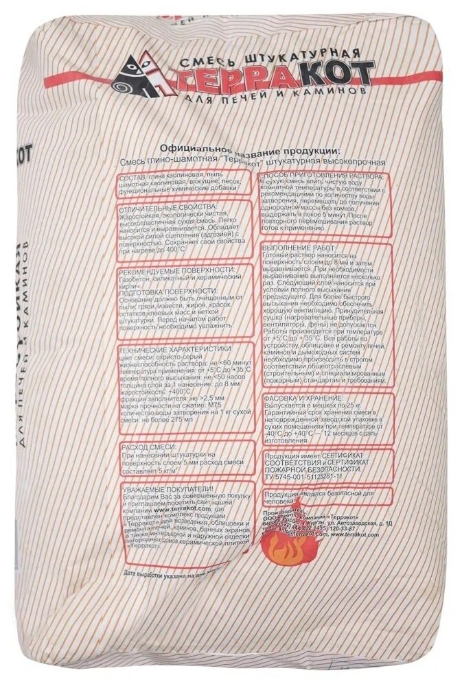 Смесь Терракот глино-шамотная штукатурная жаростойкая высокопрочная 25 кг