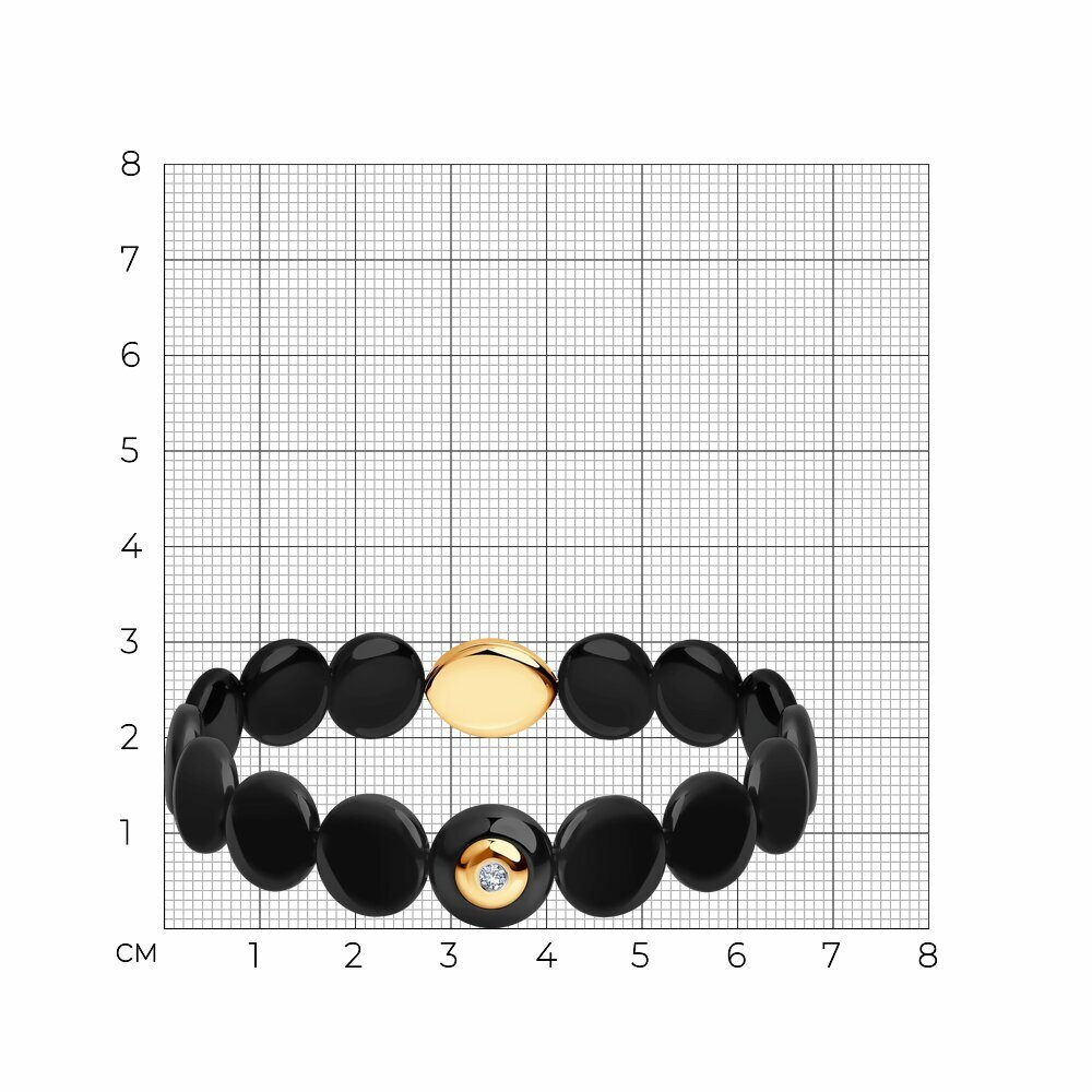 Браслет из золота с бриллиантом и чёрными керамическими вставками 6055003, Золото 585°, 19