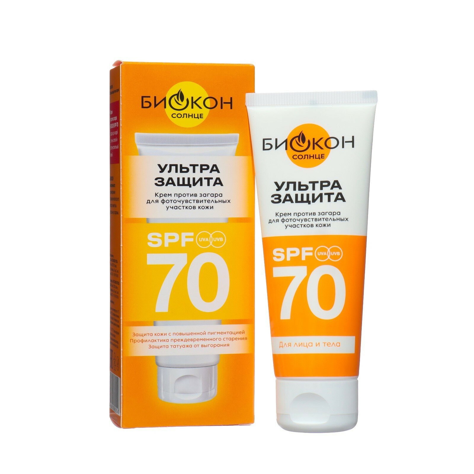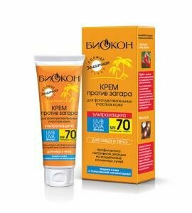 Крем против загара для фоточувствительных участков кожи ультразащита SPF70 Биокон туба 75мл