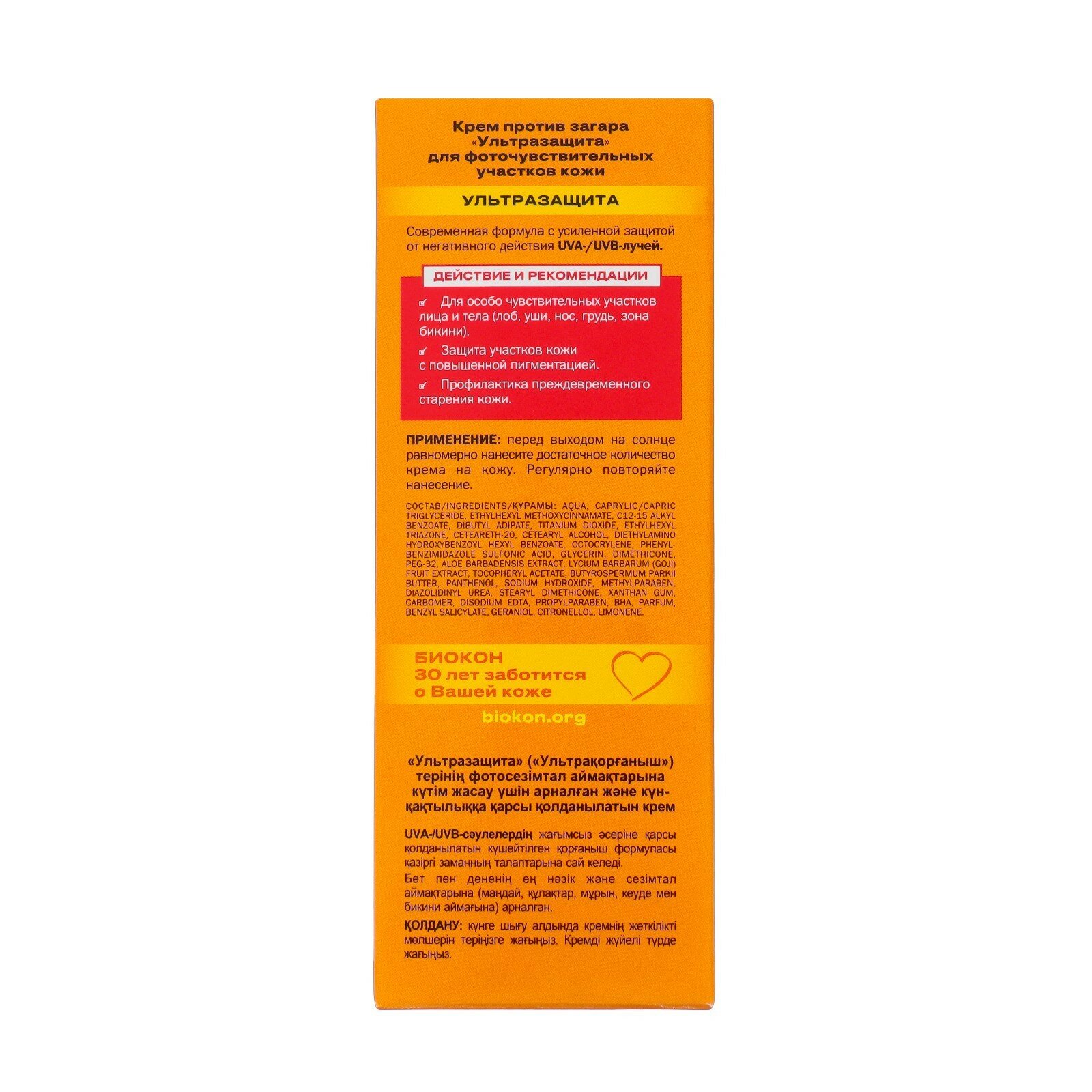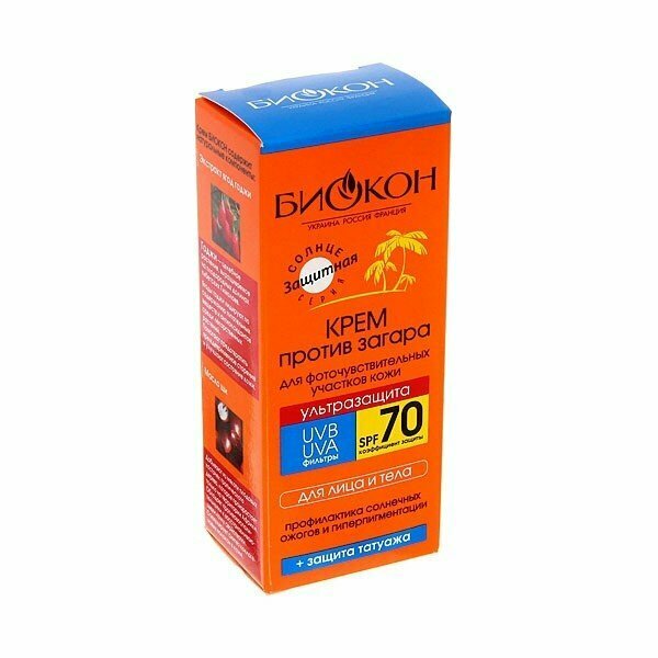 Крем против загара для фоточувствительных участков кожи Биокон "Ультразащита" spf 70, 75 мл 6972271 интересное: