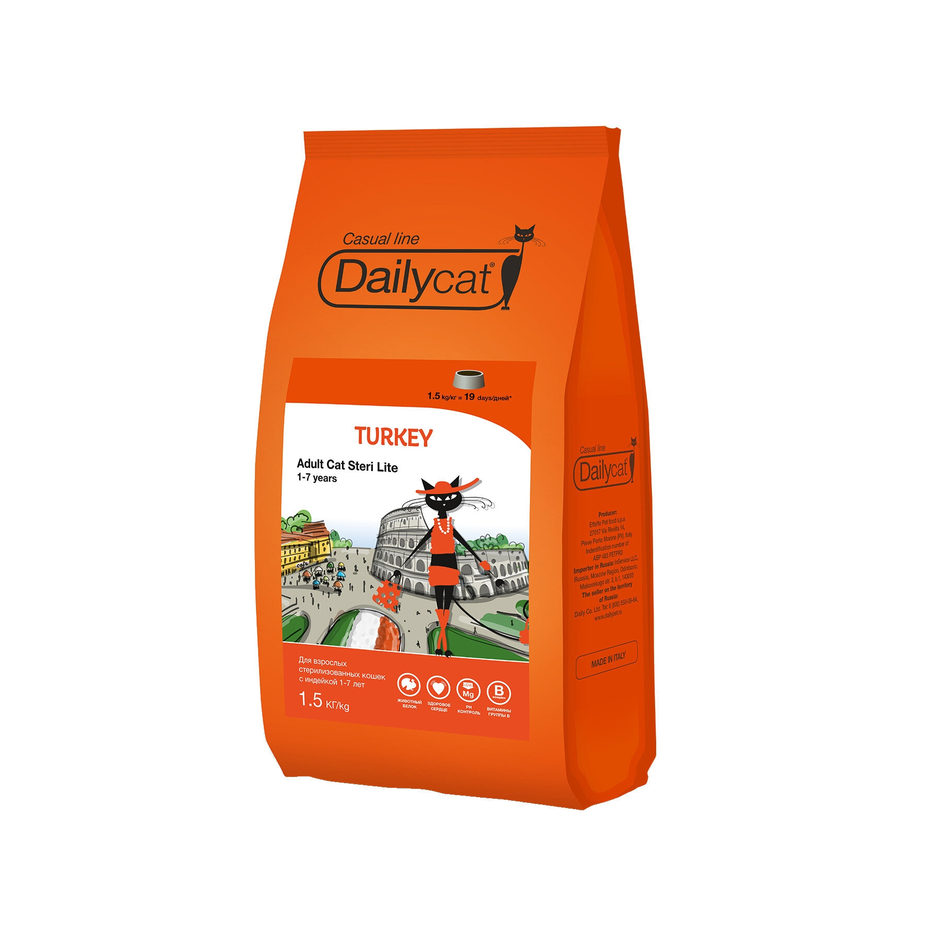 DailyCat Casual Line Adult Steri Lite Turkey корм для стерилизованных кошек с индейкой - 1,5 кг