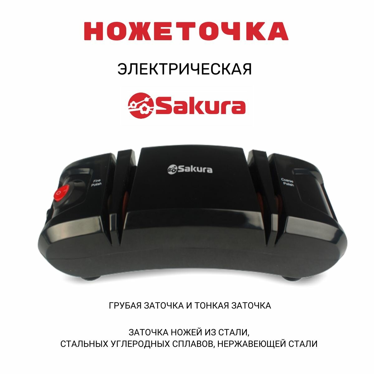 Точилка для ножей Sakura SA-6604R, электрическая, 120 Вт, красная