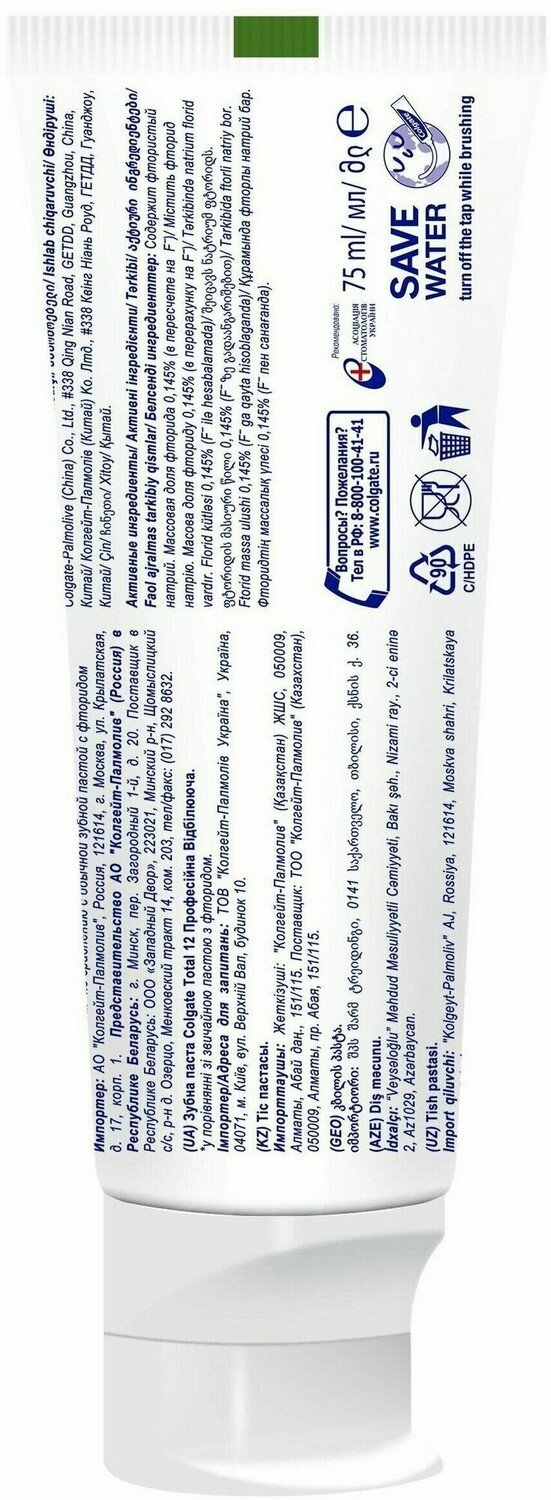 COLGATE TOTAL 12 Профессиональная Отбеливающая комплексная зубная паста, 75мл