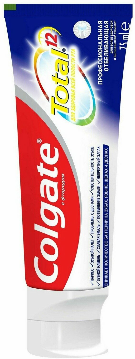 Зубная паста Colgate Total 12 Профессиональная отбеливающая, 75 мл, 1шт.