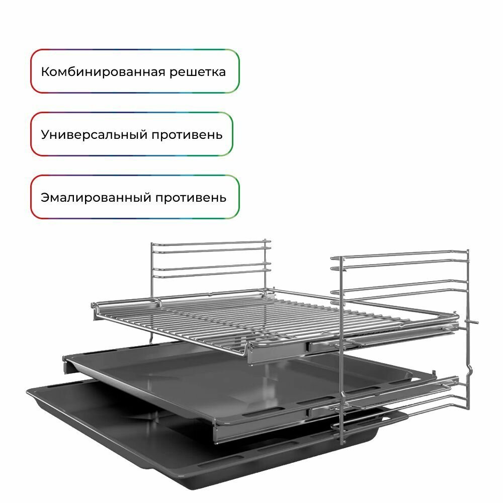 | Плюсы: | Функционал, дизайн, удобство. Выдвижные направляющие на 2х уровнях с функцией полного выдвижения и stop фиксацией на выкате. Точная регулировка температуры до 275 градусов. Автопилот на 10 блюд. Сенсорные кнопки. Дверь с доводчиком.