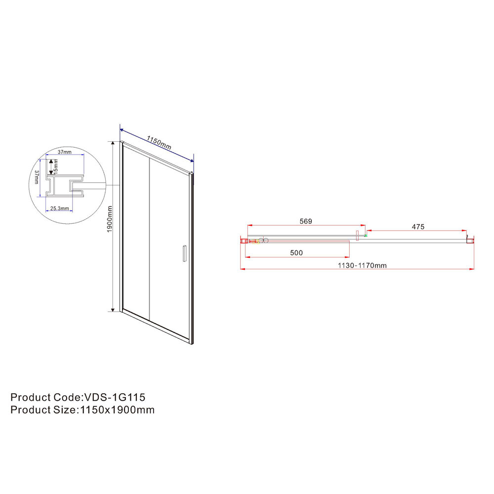 Душевая дверь Extra VDP-1E8090CL, 800/900, хром, стекло прозрачное
