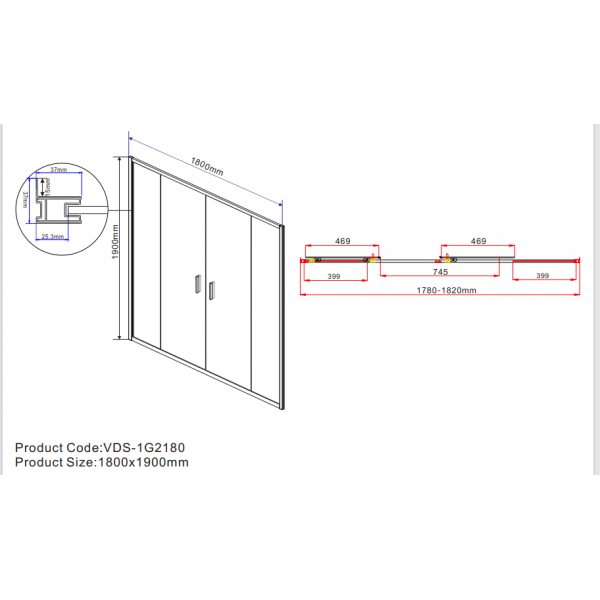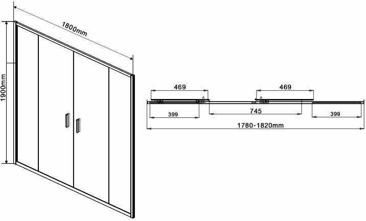 Душевая дверь Garda VDS-1G2180CL, 1800, хром, стекло прозрачное 1800x1900