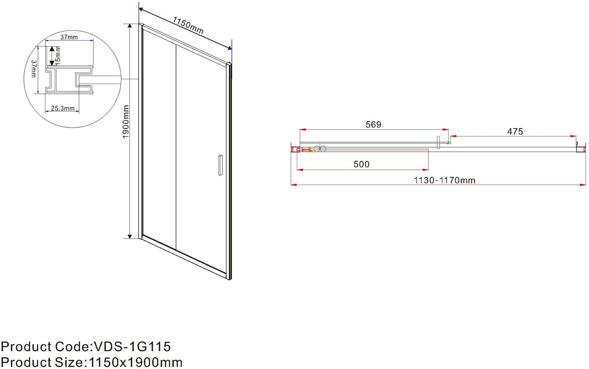 Душевая дверь Extra VDP-1E8090CL, 800/900, хром, стекло прозрачное