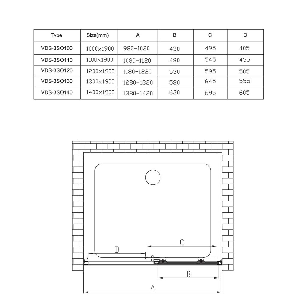 Душевая дверь Vincea Dice 110 VDS-4D110CLB профиль Черный стекло прозрачное