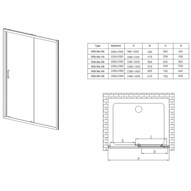 Душевая дверь Vincea Alpha VDP-3AL850CL 85х195 см, стекло прозрачное. Размер регулировки 830-850 мм.