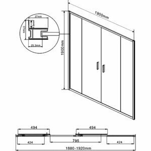 Vincea Душевая дверь Garda VDS-1G2190CL, 1900, хром, стекло прозрачное 1900x1900