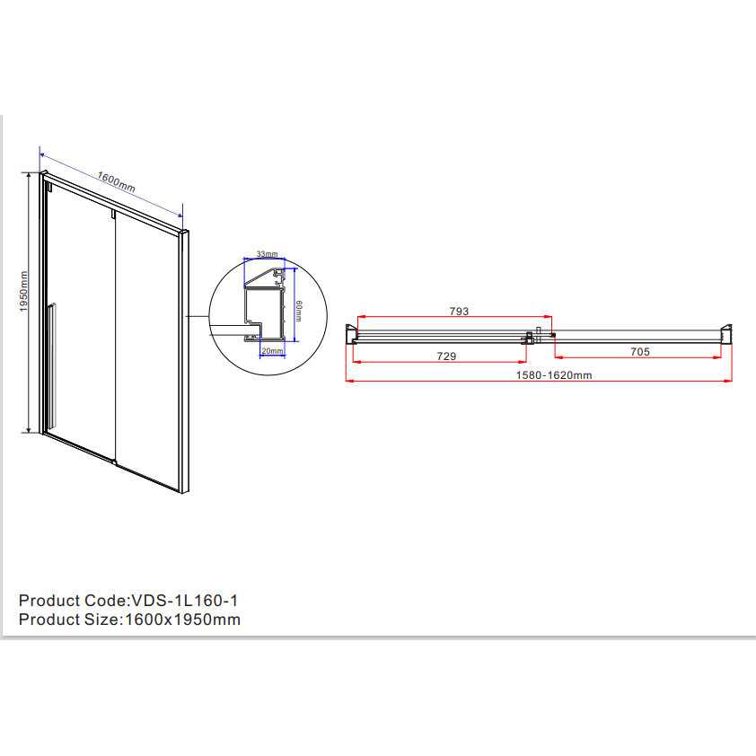 Купить Душевая дверь Vincea Lugano VDS-1L-1 160х195 прозрачная, хром (VDS-1L160CL-1)