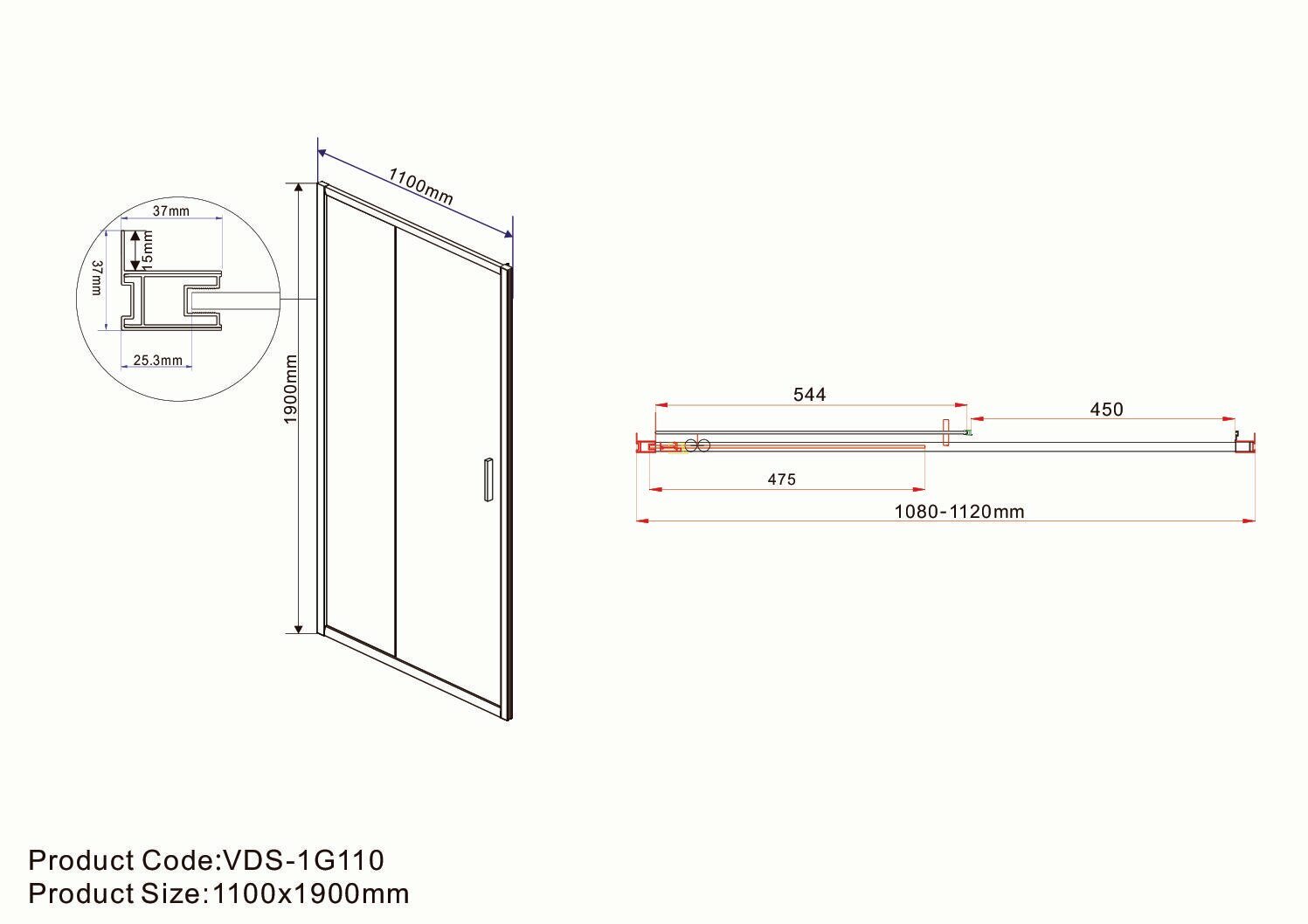 Раздвижная душевая дверь Vincea Garda VDS-1G110CL 110 см