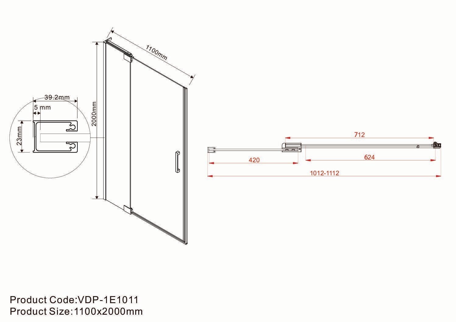 Душевая дверь Vincea Extra VDP-1E1112CL, 1100x1200, хром, стекло прозрачное