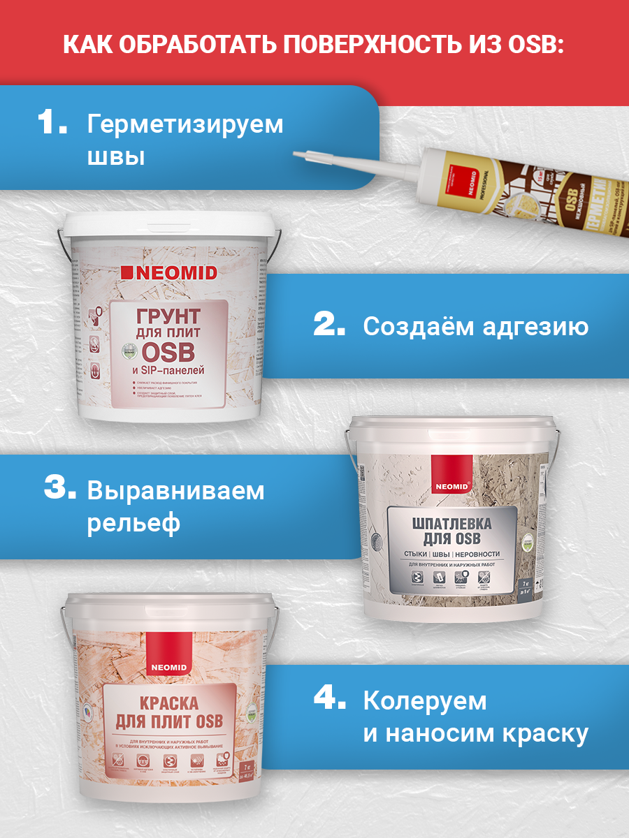 Шпатлевка для Плит OSB Neomid 7кг Образует Влагостойкое, Эластичное Покрытие / Неомид для ОСБ.