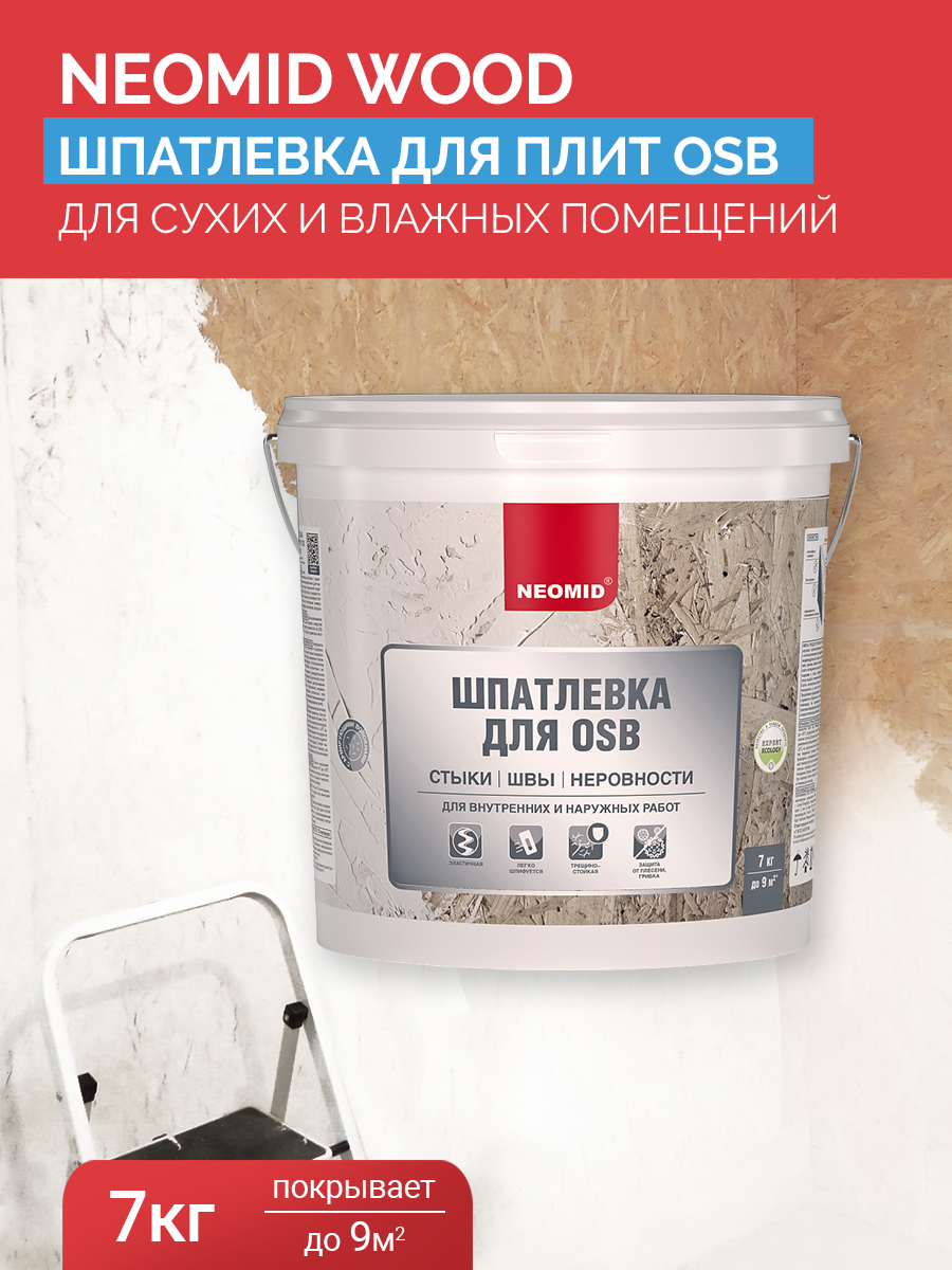 Шпатлевка для Плит OSB Neomid 7кг Образует Влагостойкое, Эластичное Покрытие / Неомид для ОСБ.*