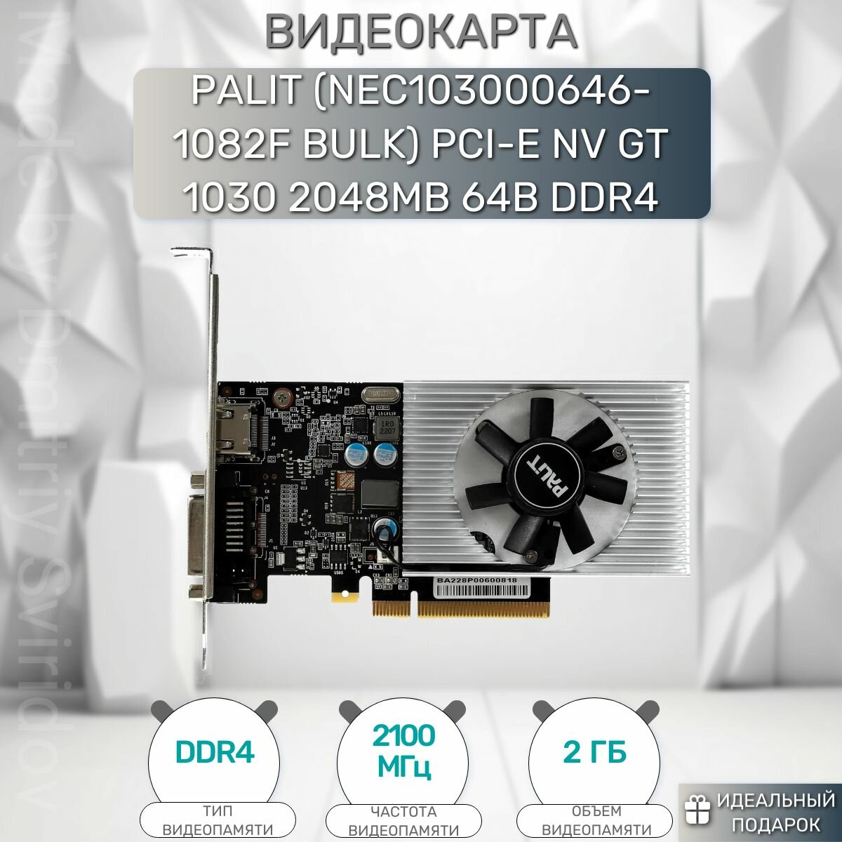 Видеокарта Palit GeForce GT 1030 2048 МБ, BULK (nec103000646-1082f bulk)