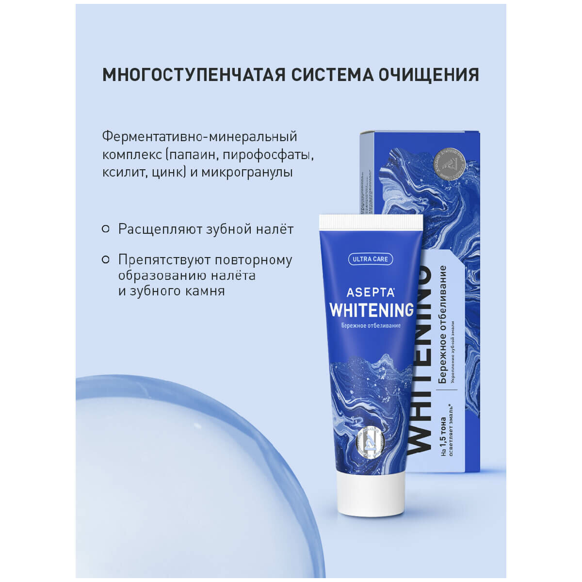 Зубная паста асепта "Бережное отбеливание", 75 мл