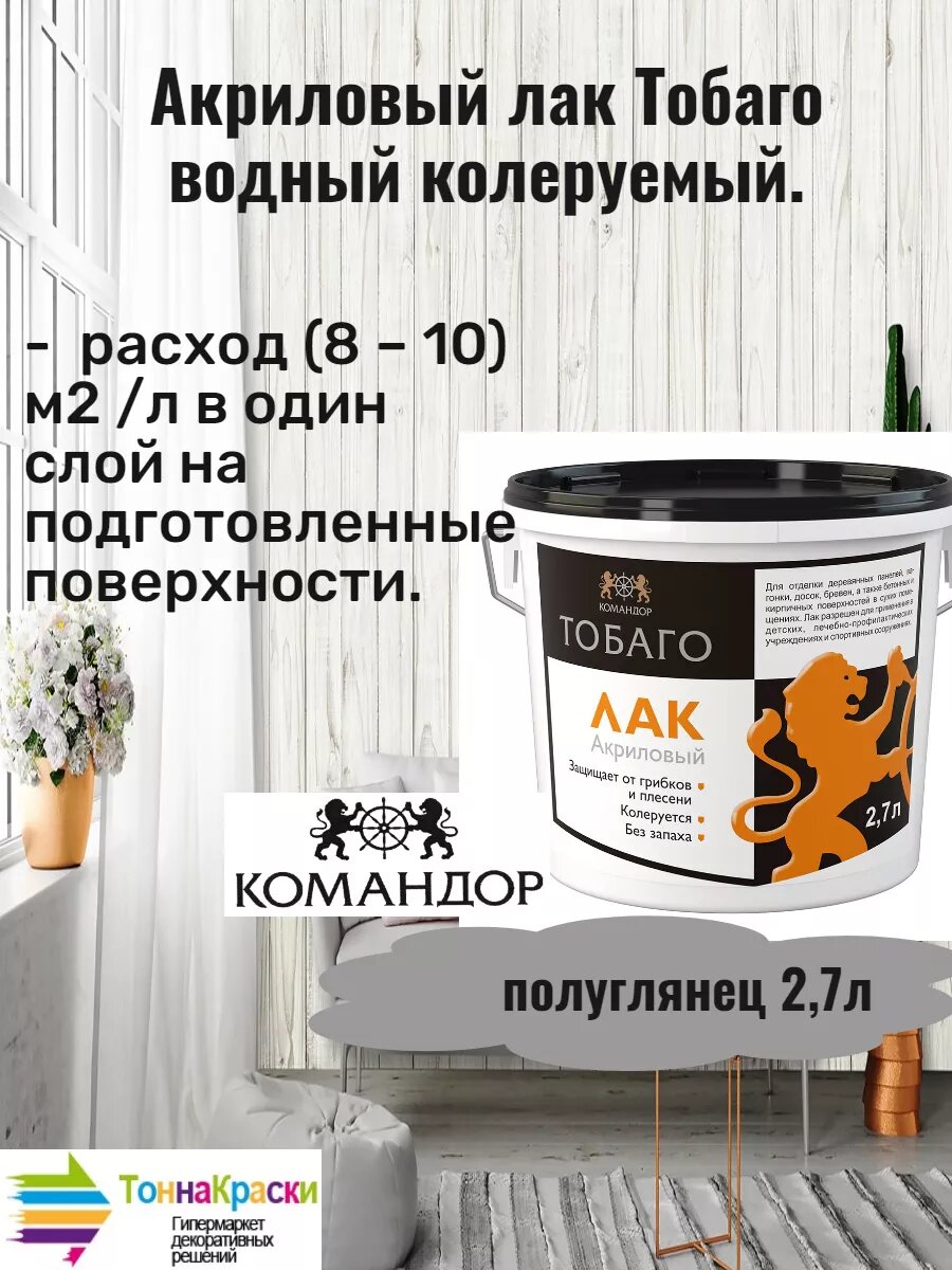 СохранитьАкриловый лак Тобаго водный колеруем полуглянец 2.7 л интересное: