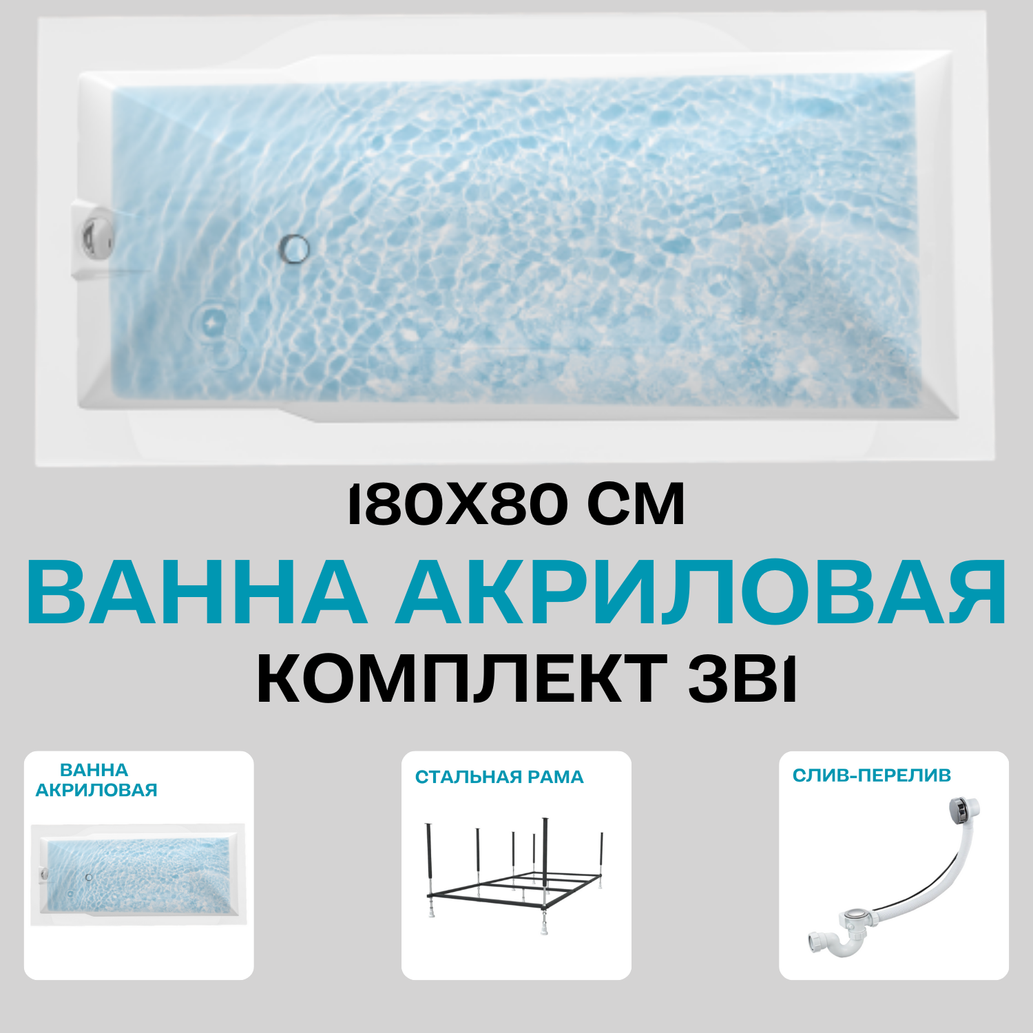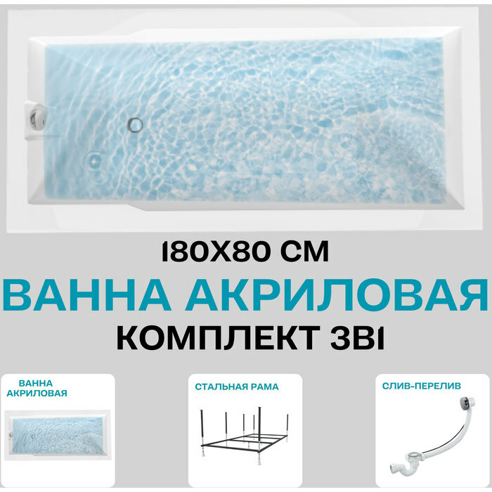 СохранитьВанна акриловая 180х80 см 1MARKA RAGUZA в наборе 3 в 1: Прямоугольная ванна, усиленный металлический каркас, слив-перелив хром 01ра1880кс2+ интересное: