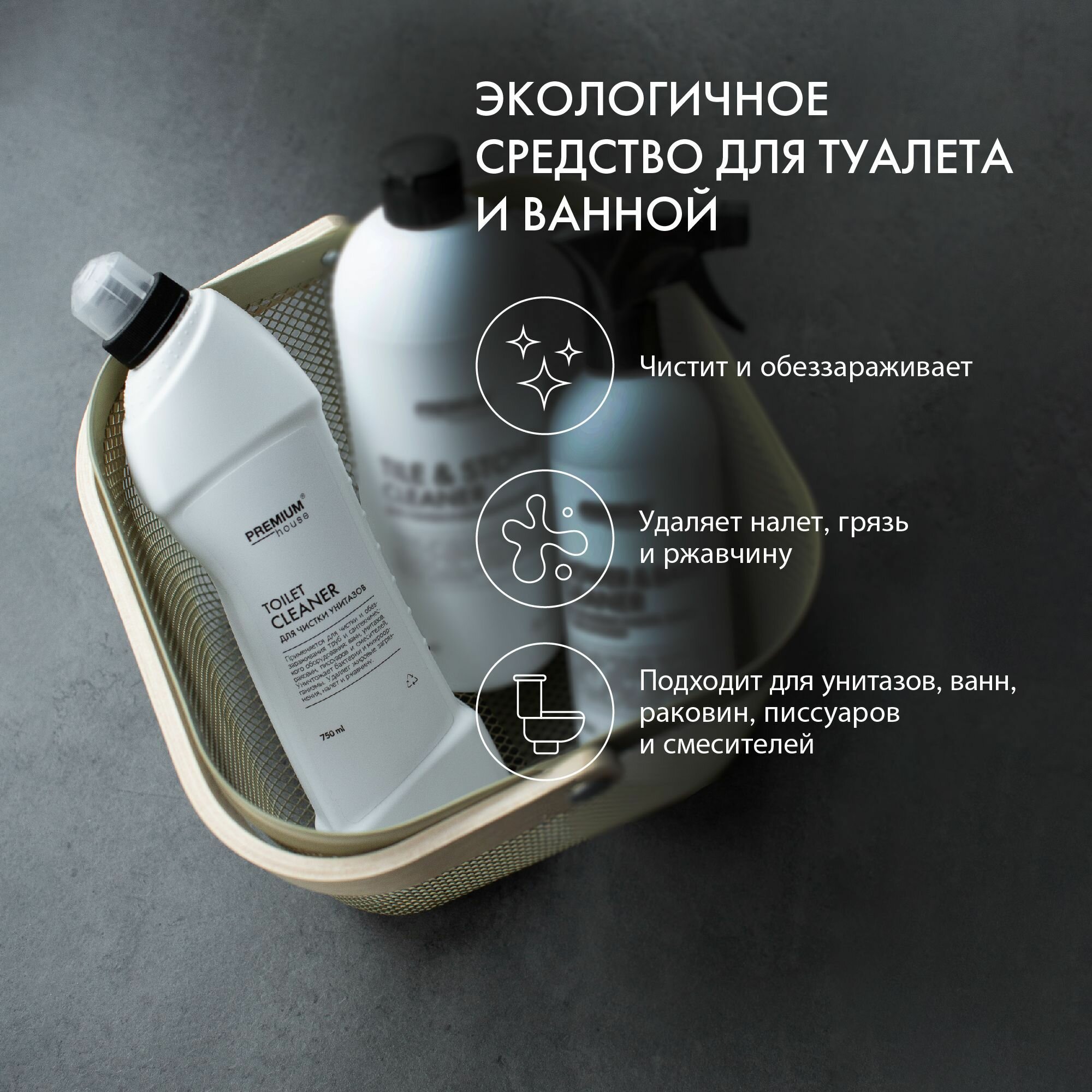 Гель для чистки унитаза с антибактериальным эффектом Premium House / Дезинфицирующее средство от налета и ржавчины