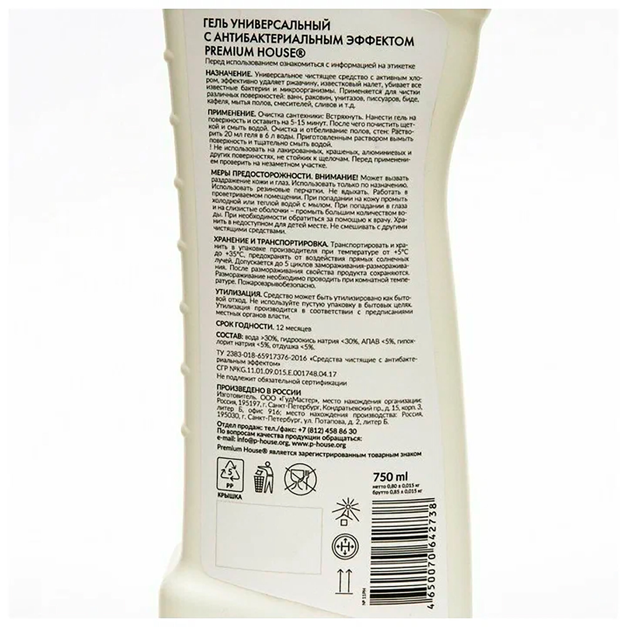 Premium House гель с антибактериальным эффектом, 0.75 л