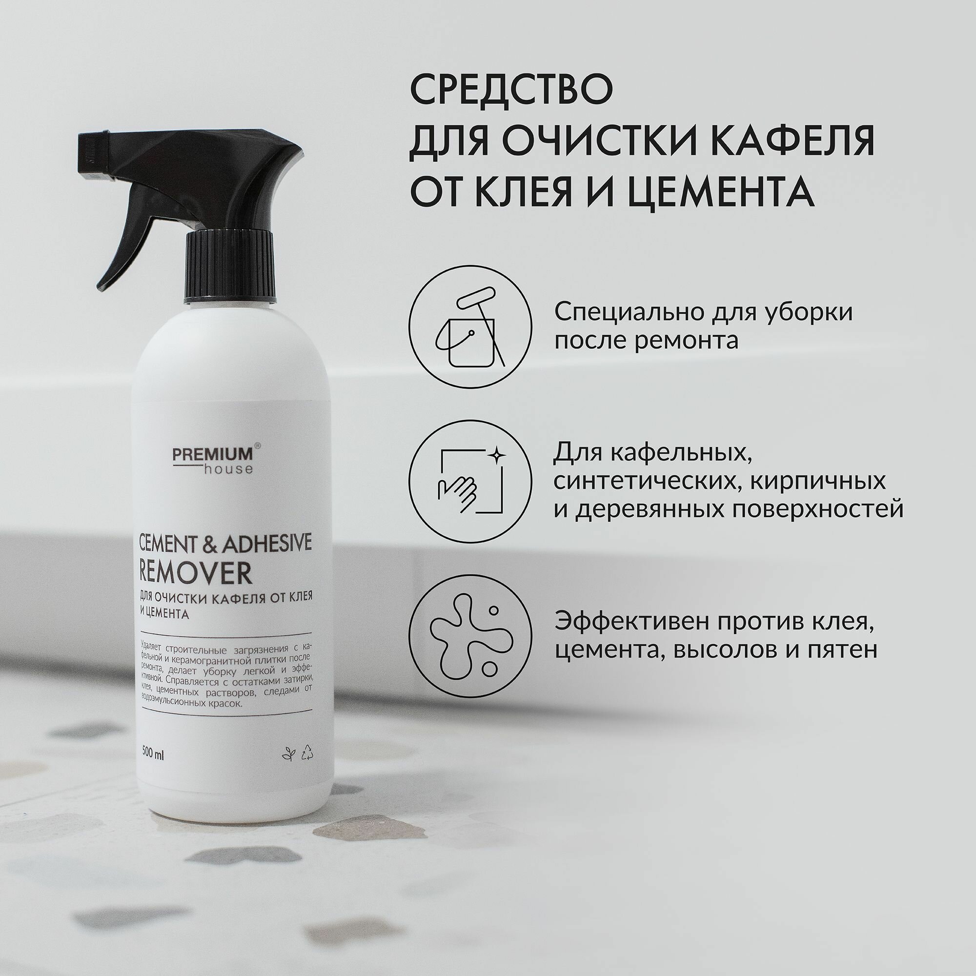 Чистящее средство от остатков затирки и цемента Premium House / Очиститель для уборки после ремонта