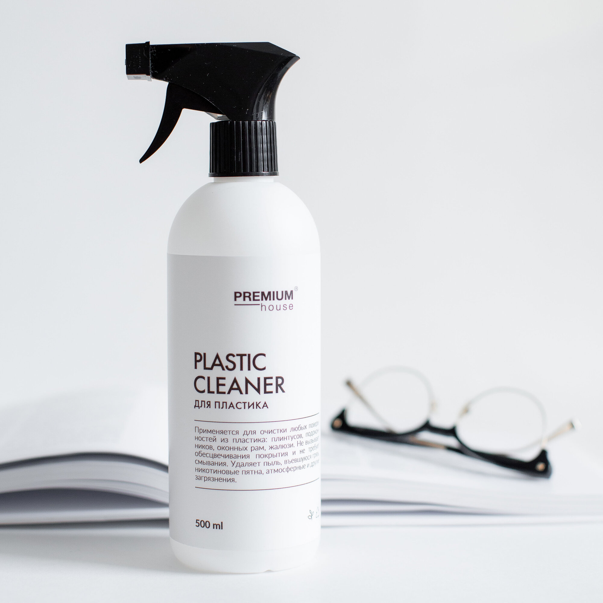 Чистящее средство для пластика и пластиковых окон Premium House / Спрей для уборки дома от пятен и грязи / От клея, стикеров, наклеек, клейкой ленты