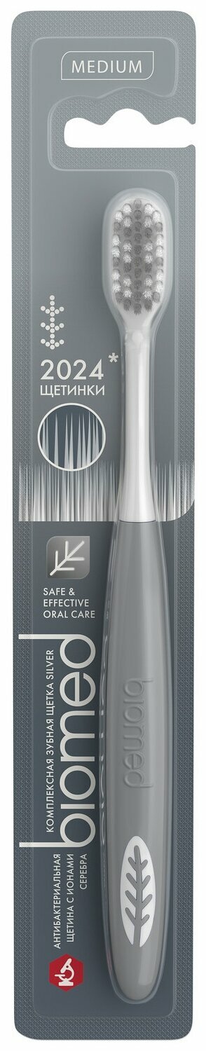 Комплексная зубная щетка BIOMED SILVER средней жесткости серая