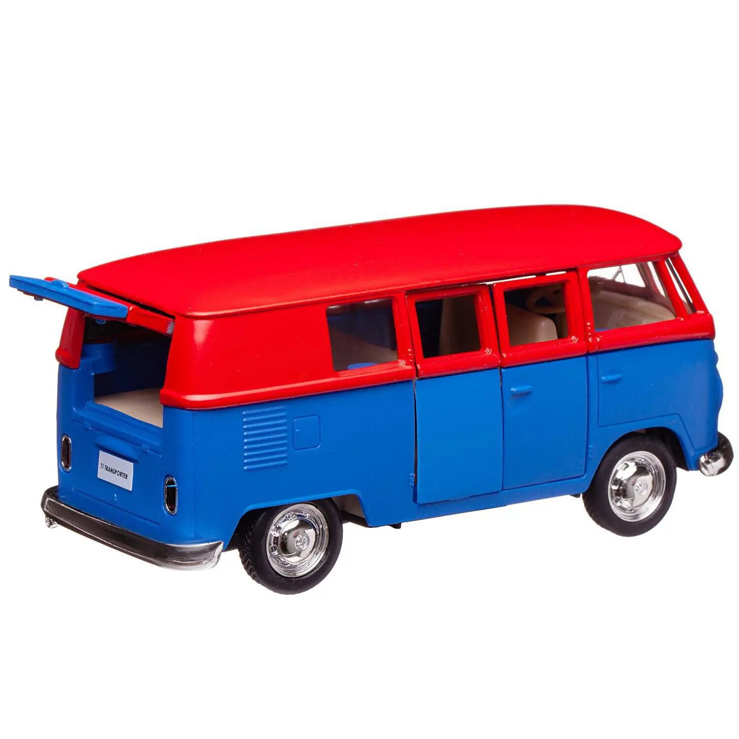 СохранитьМашинка металлическая Uni-Fortune RMZ City серия 1:32 Автобус инерционный Volkswagen Samba bus Transporter, цвет матовый красный с синим, двери открываются интересное: