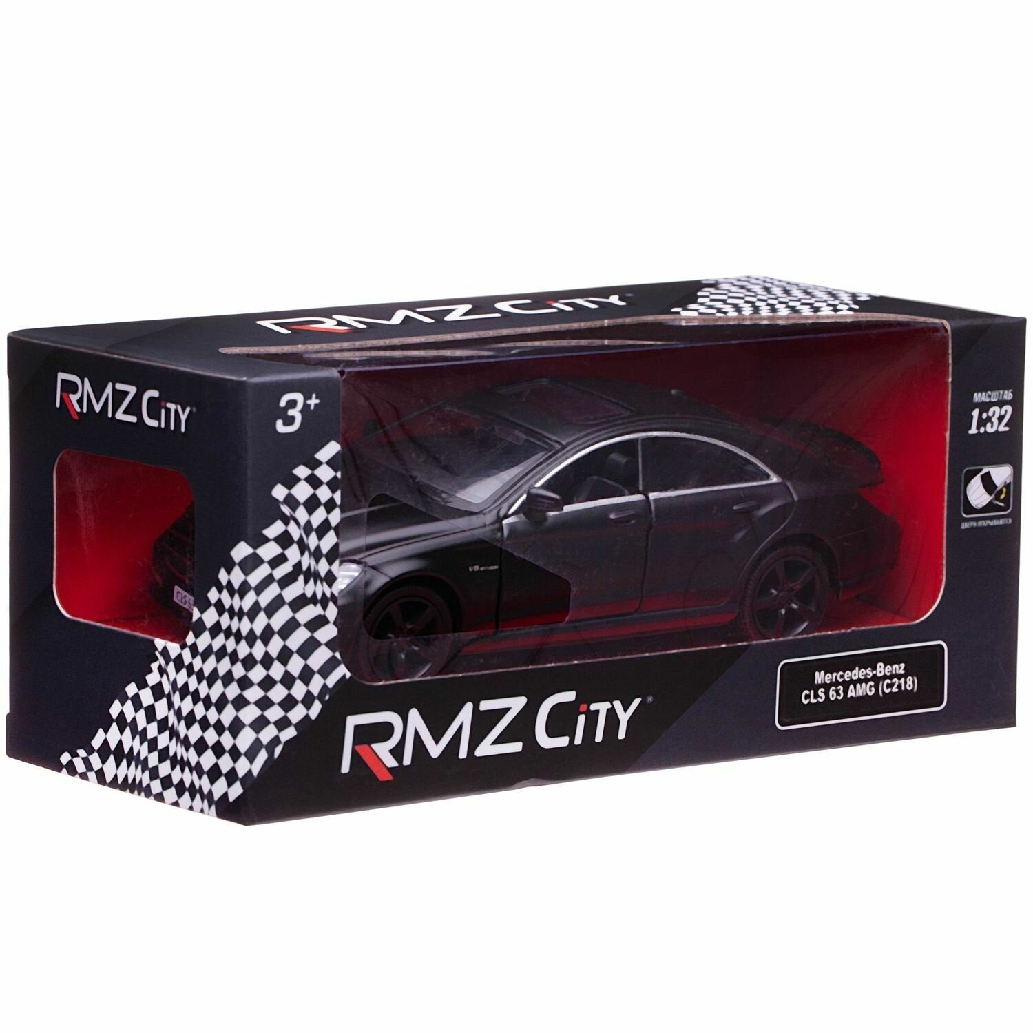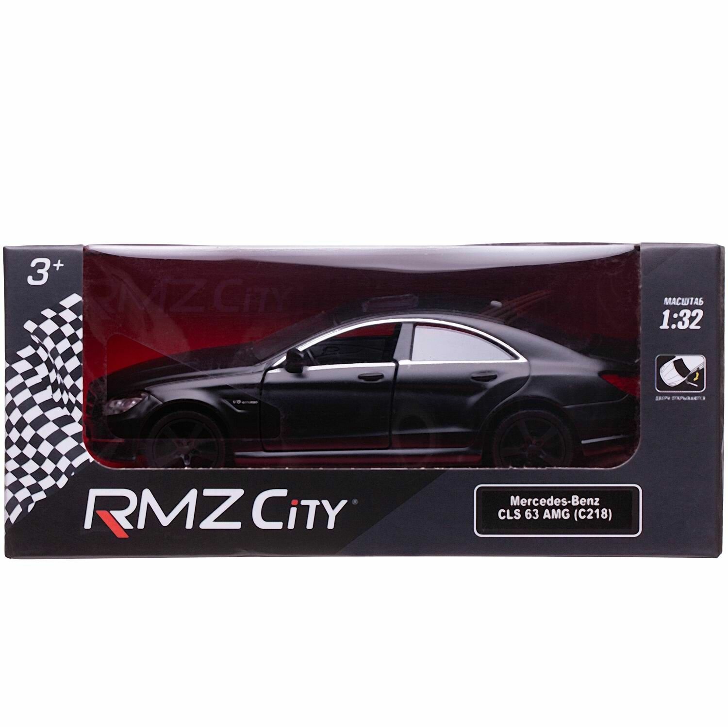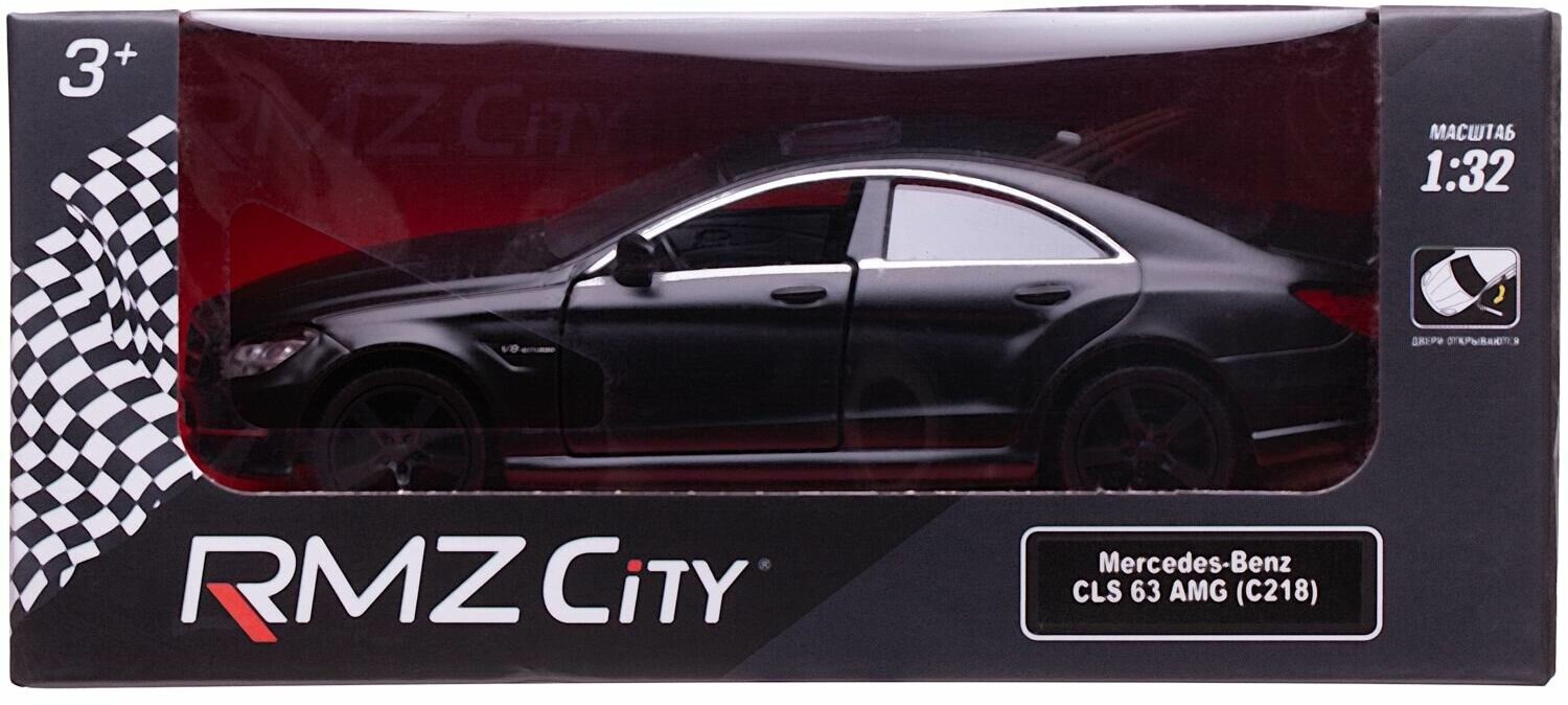 Машинка металлическая Uni-Fortune RMZ City серия 1:32 Mercedes Benz CLS 63 AMG, инерционная, черный матовый цвет, двери открываются 554995M
