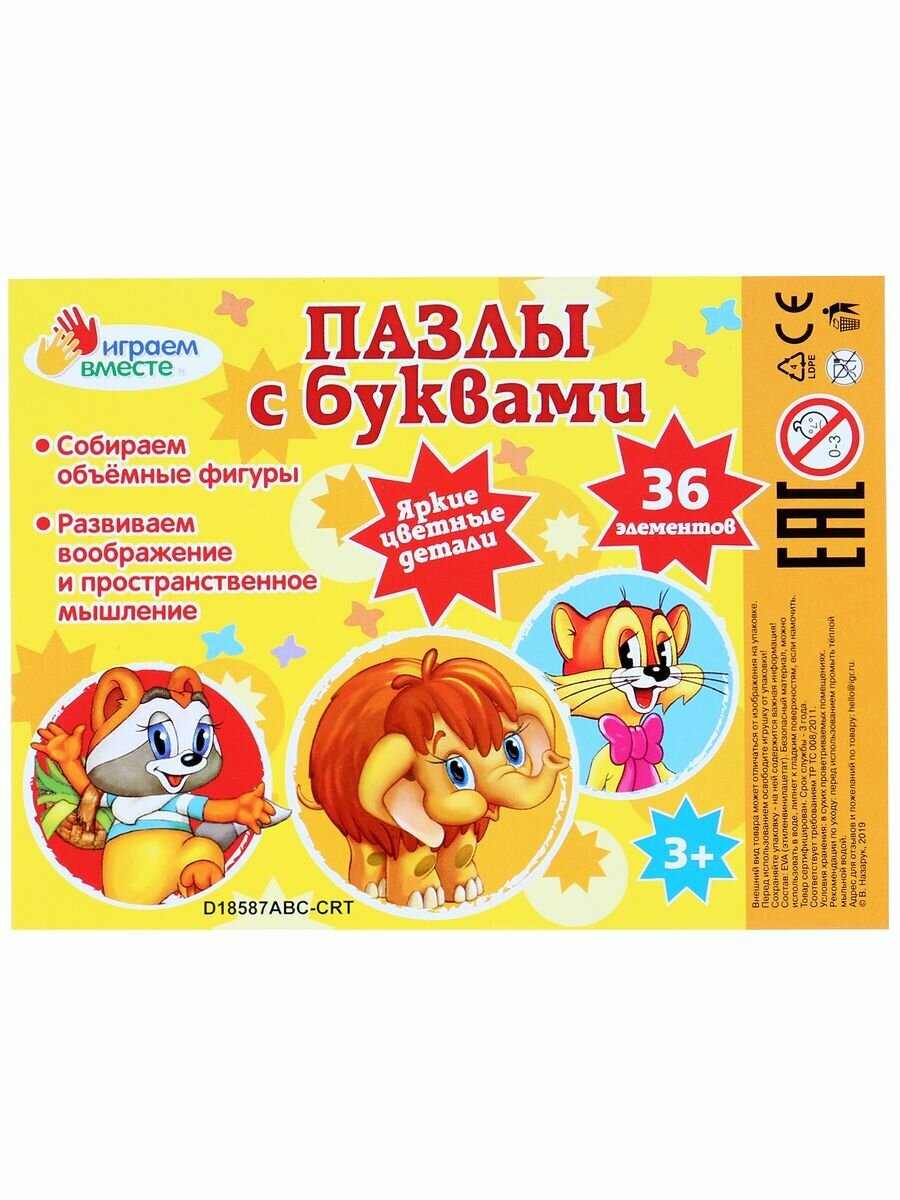 Купить Коврик пазл игровой развивающий напольный для малышей Буквы Играем вместе 36 элементов