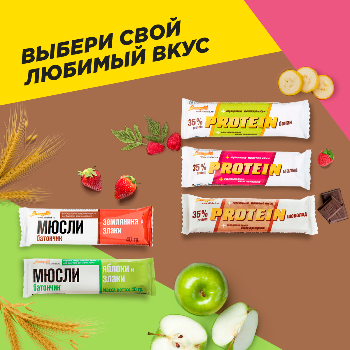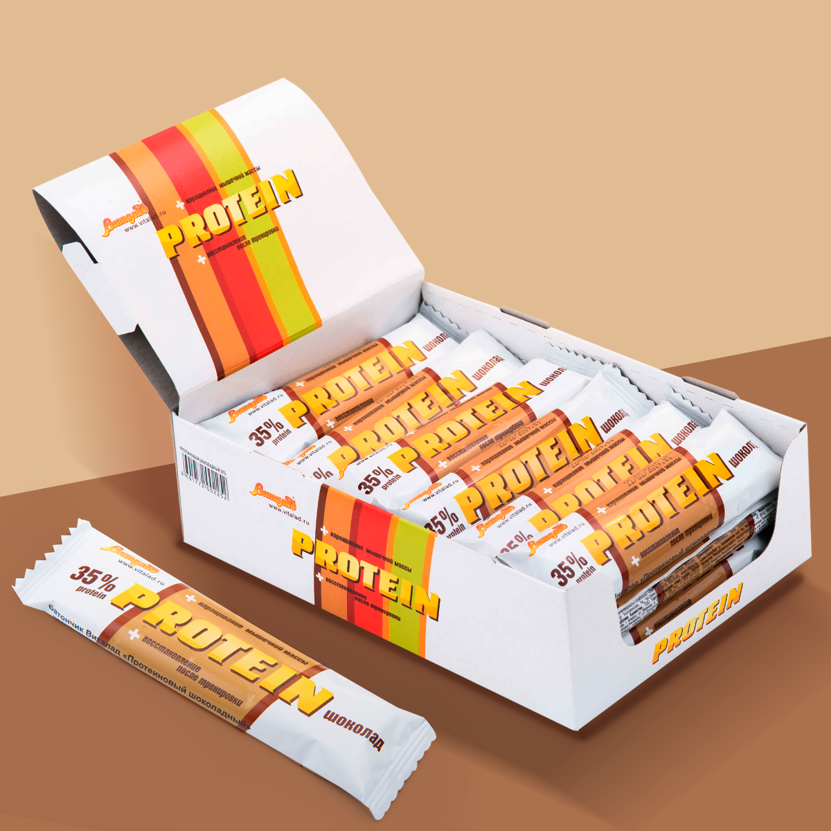 Виталад Батончик Протеиновый шоколадный, 40 гр, шоу-бокс 24 шт. интересное: