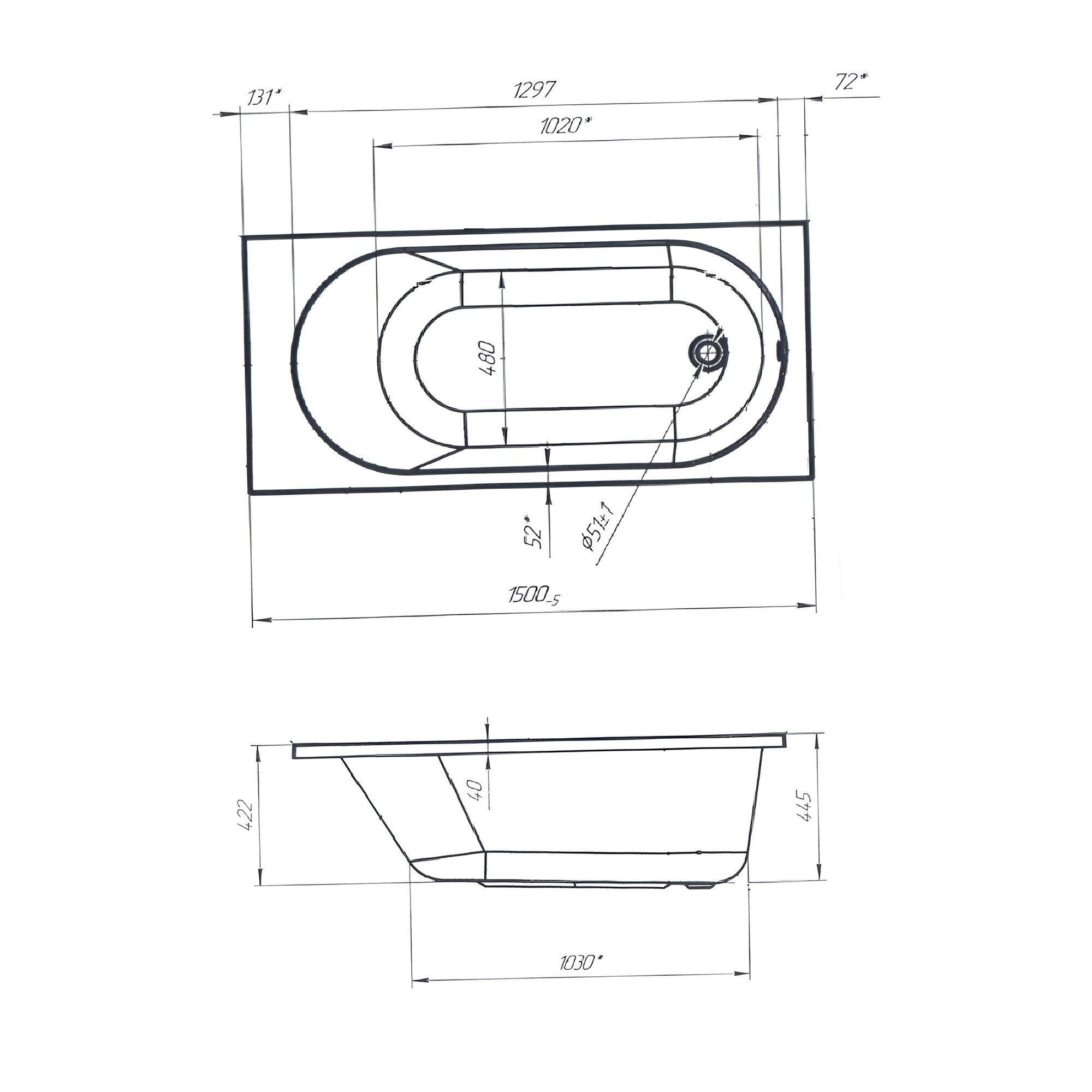 Акриловая ванна 1Marka PICCOLO 150x75 R