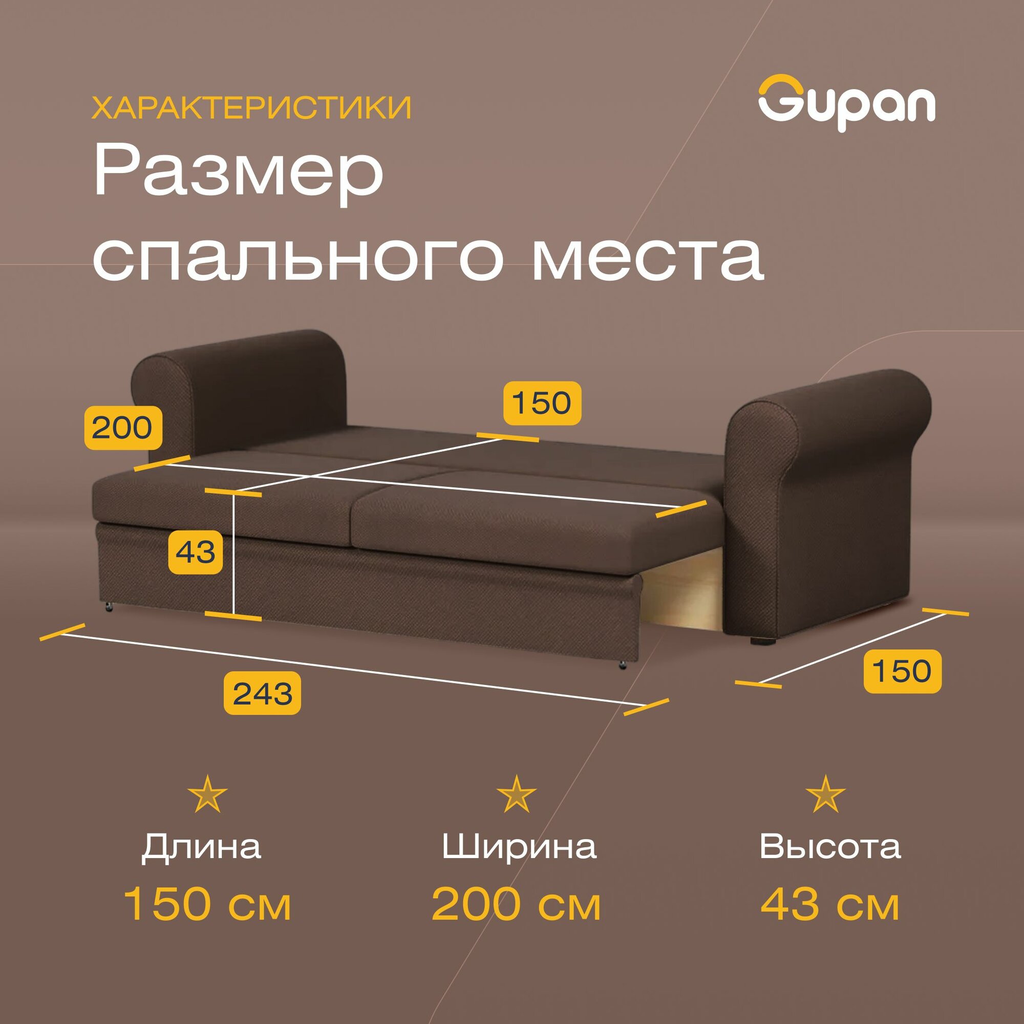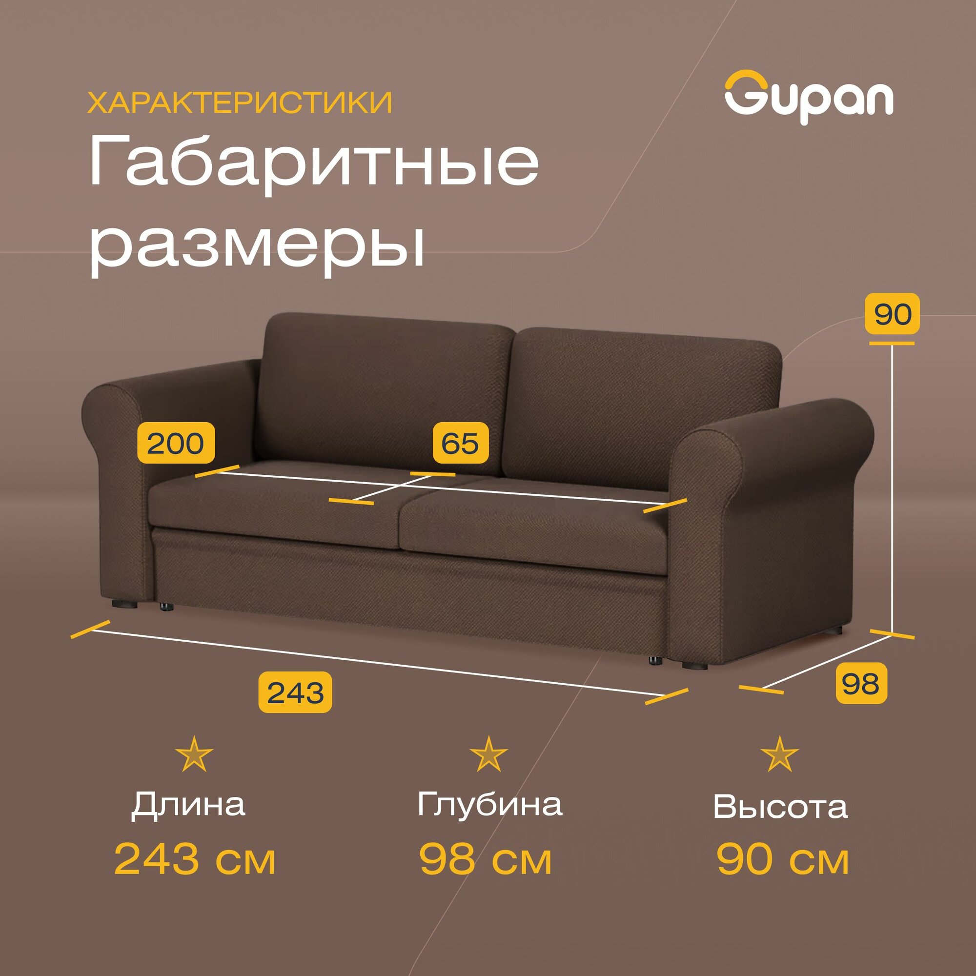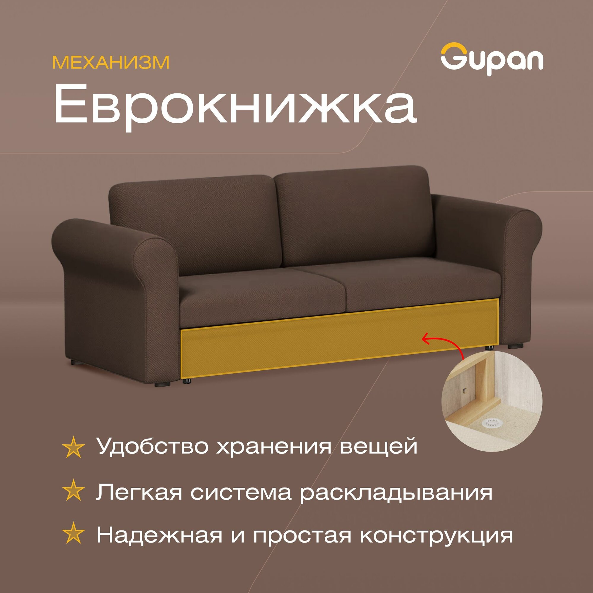 Диван кровать Gupan Римини Велюр Amigo Cocoa, раскладной, механизм еврокнижка, беспружинный, с ящиком для белья