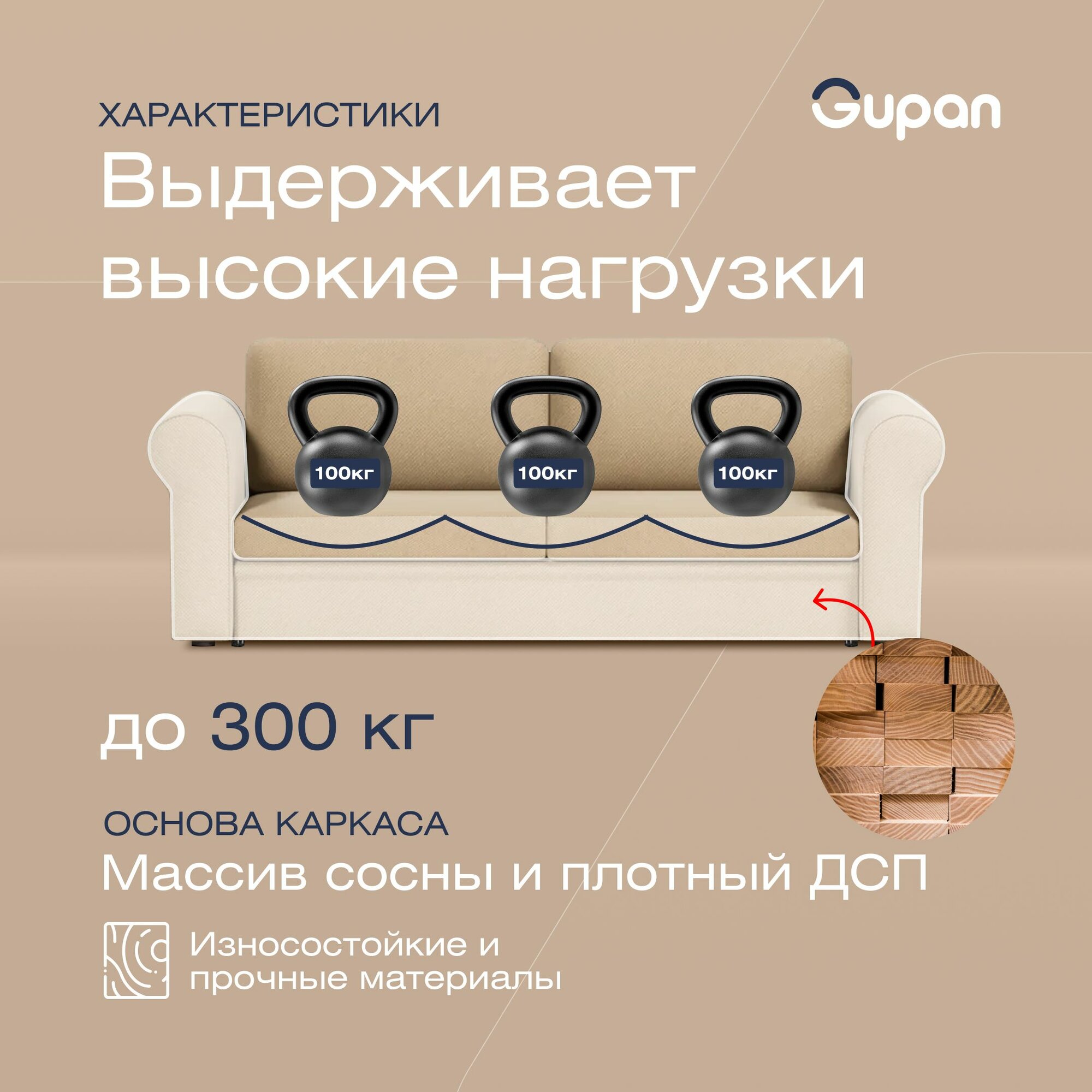 Диван кровать Gupan Римини Велюр Amigo Cream, раскладной, механизм еврокнижка, беспружинный, с ящиком для белья