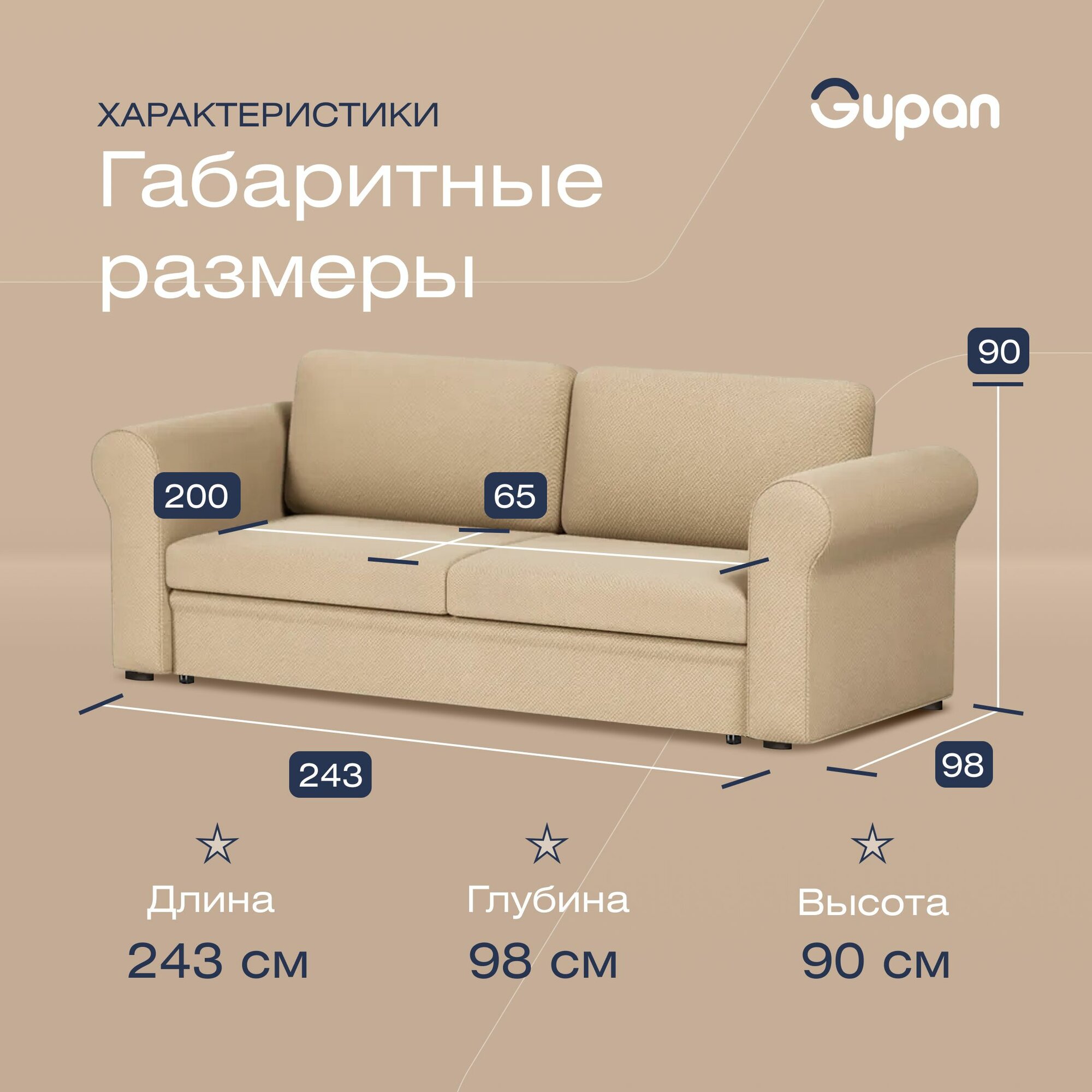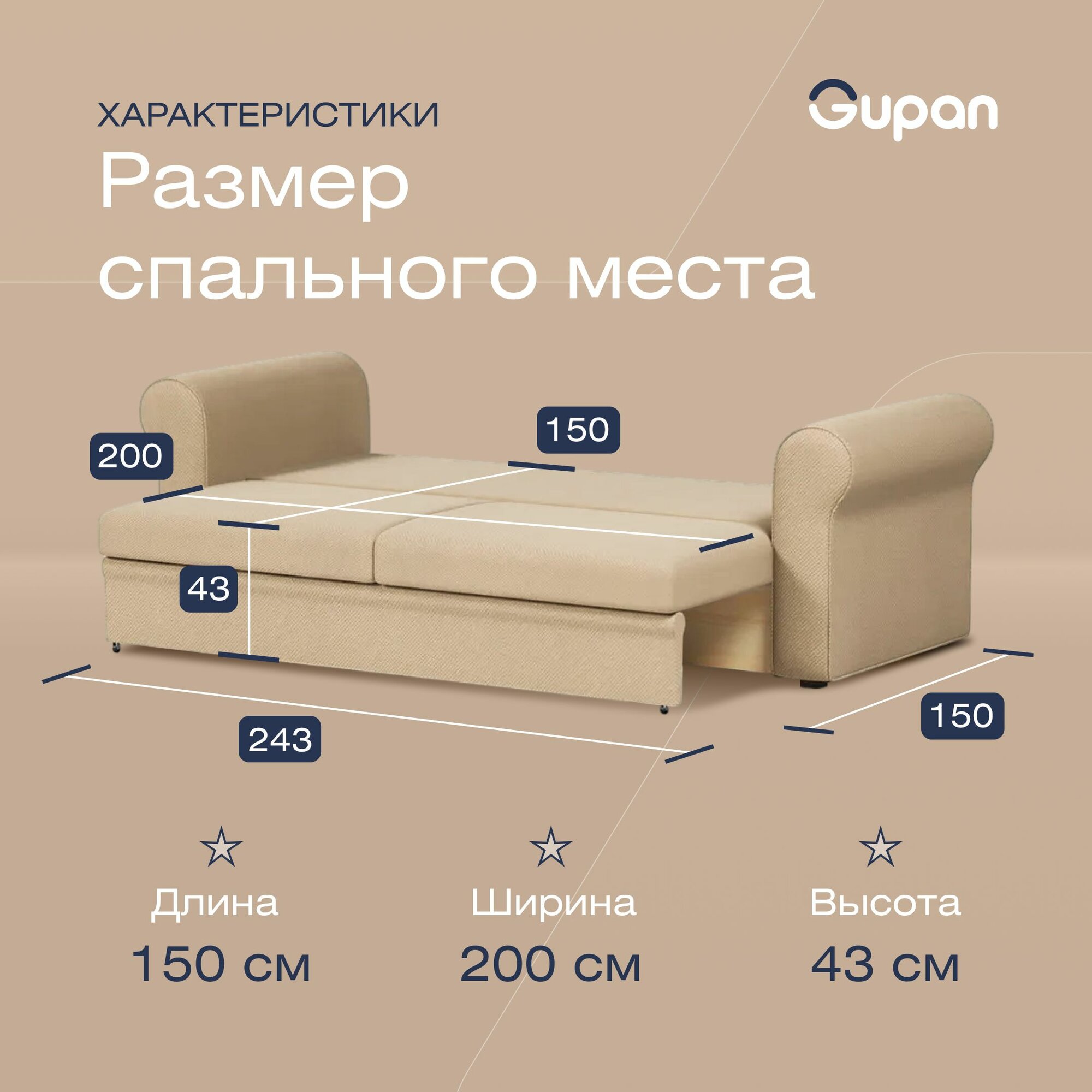 Диван кровать Gupan Римини Велюр Amigo Latte, раскладной, механизм еврокнижка, беспружинный, с ящиком для белья