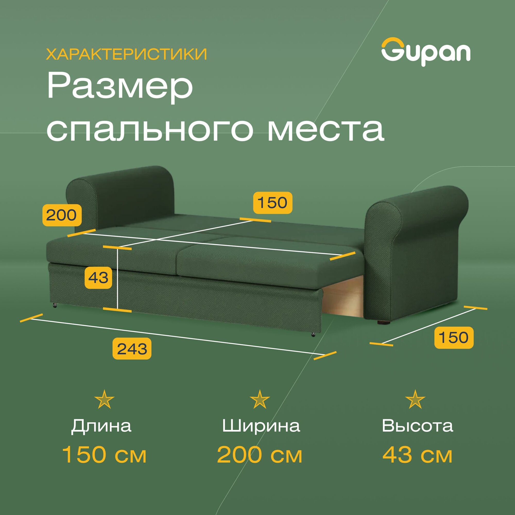 СохранитьДиван кровать Gupan Римини Велюр Amigo Green, раскладной, механизм еврокнижка, беспружинный, с ящиком для белья интересное: