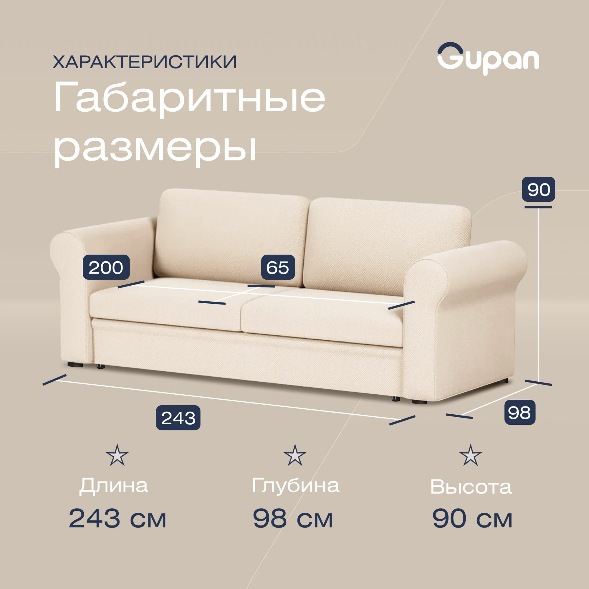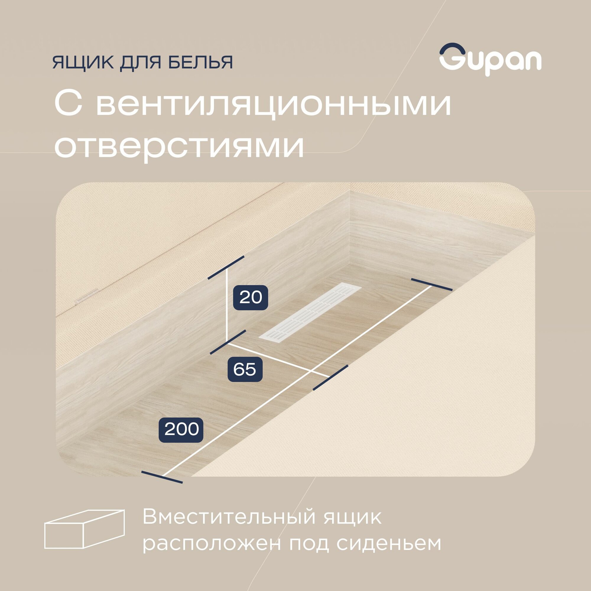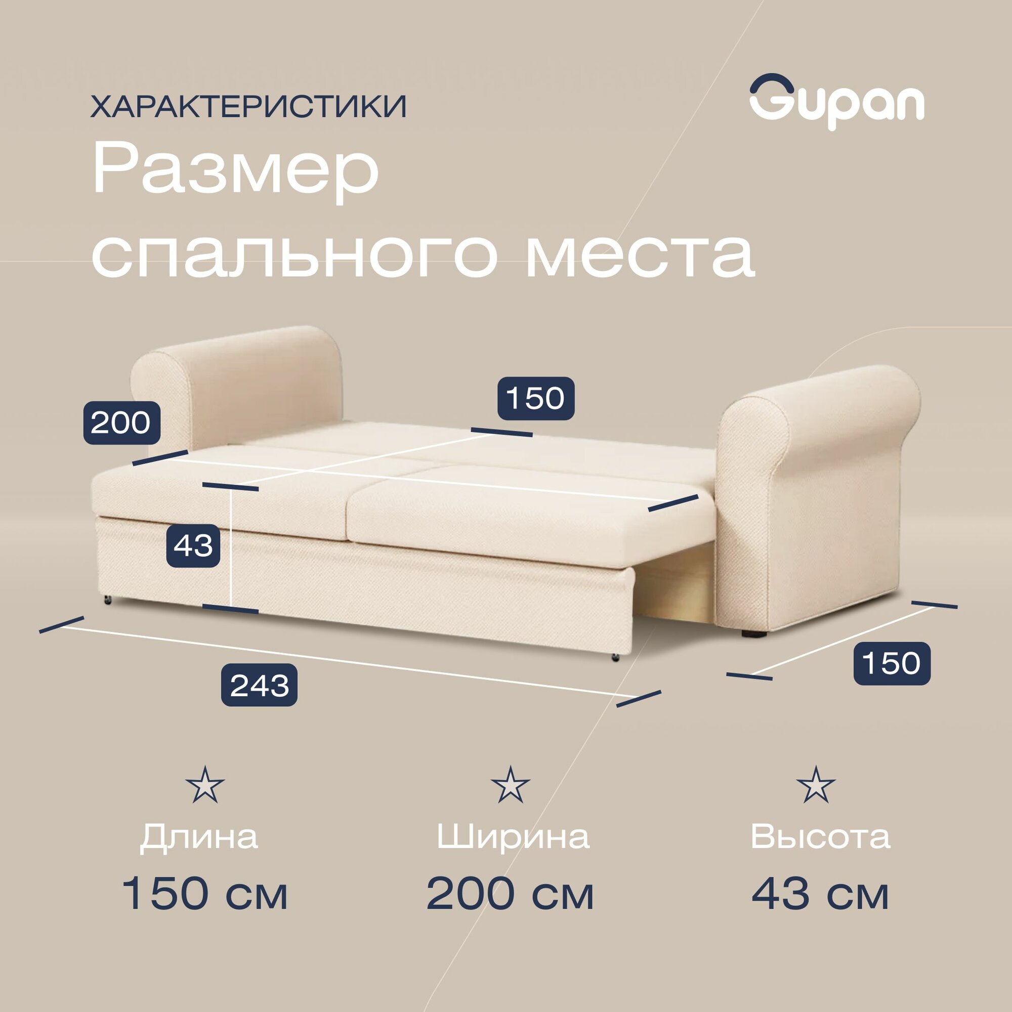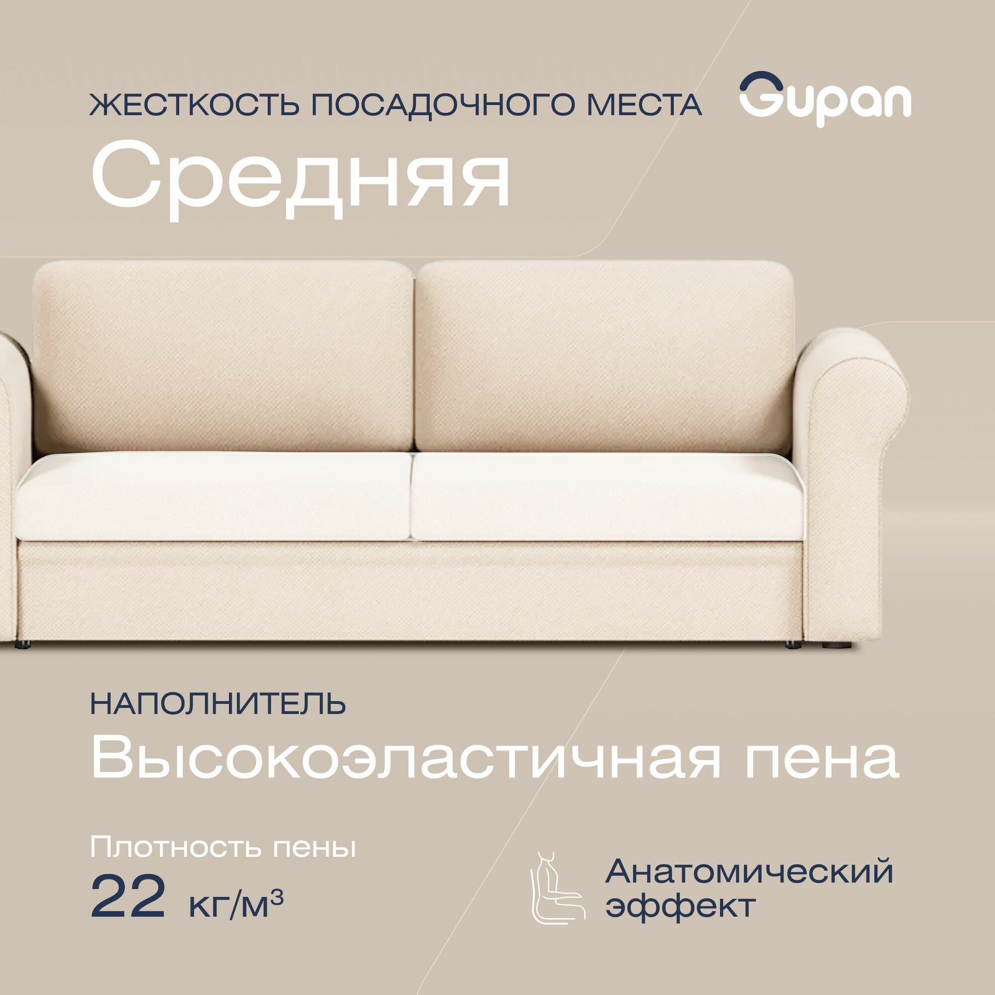Диван кровать Gupan Римини Велюр Amigo Beige, раскладной, механизм еврокнижка, беспружинный, с ящиком для белья