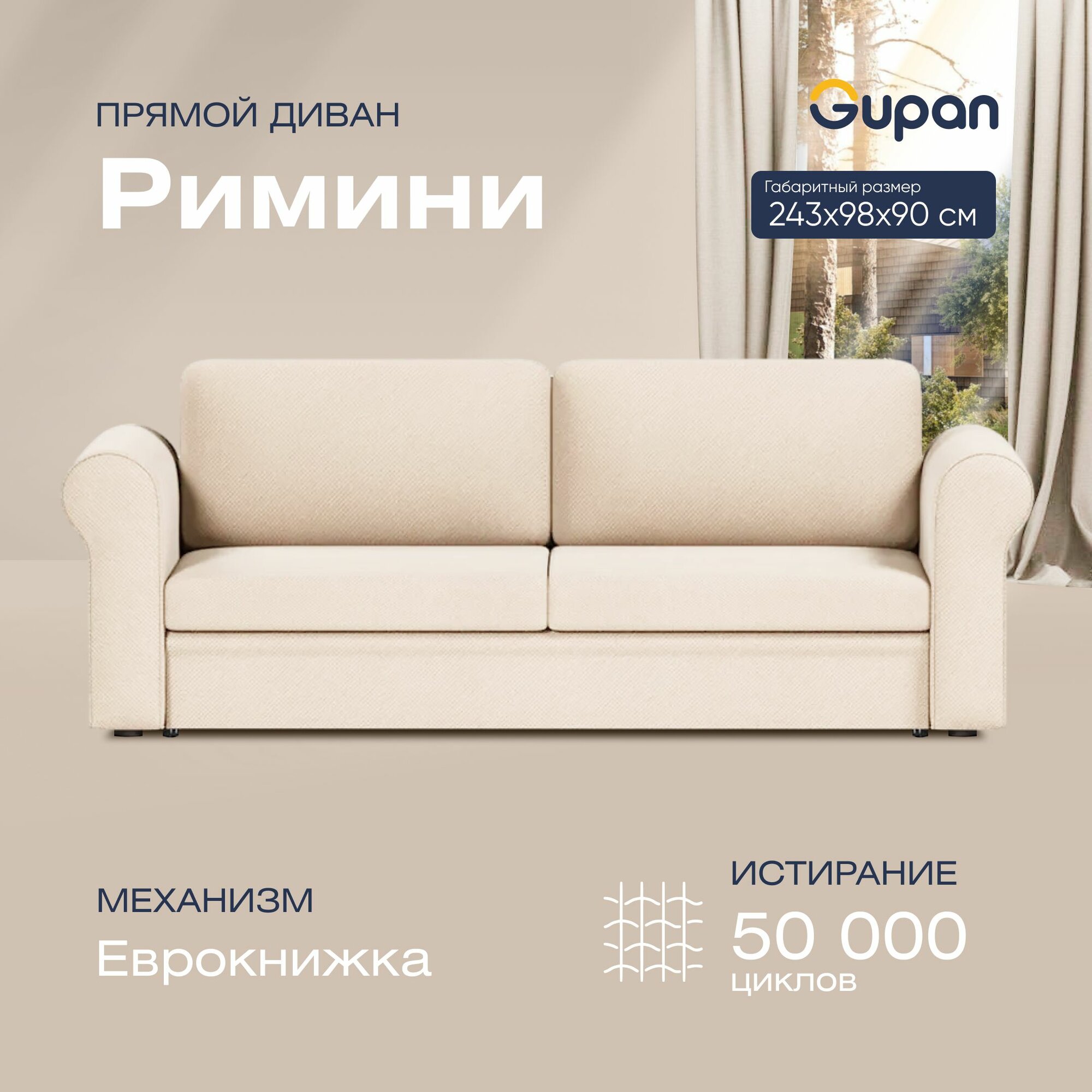 Диван кровать Gupan Римини Велюр Amigo Beige, диван раскладной, механизм еврокнижка, беспружинный, диван прямой, с ящиком для белья, в гостиную, лофт
