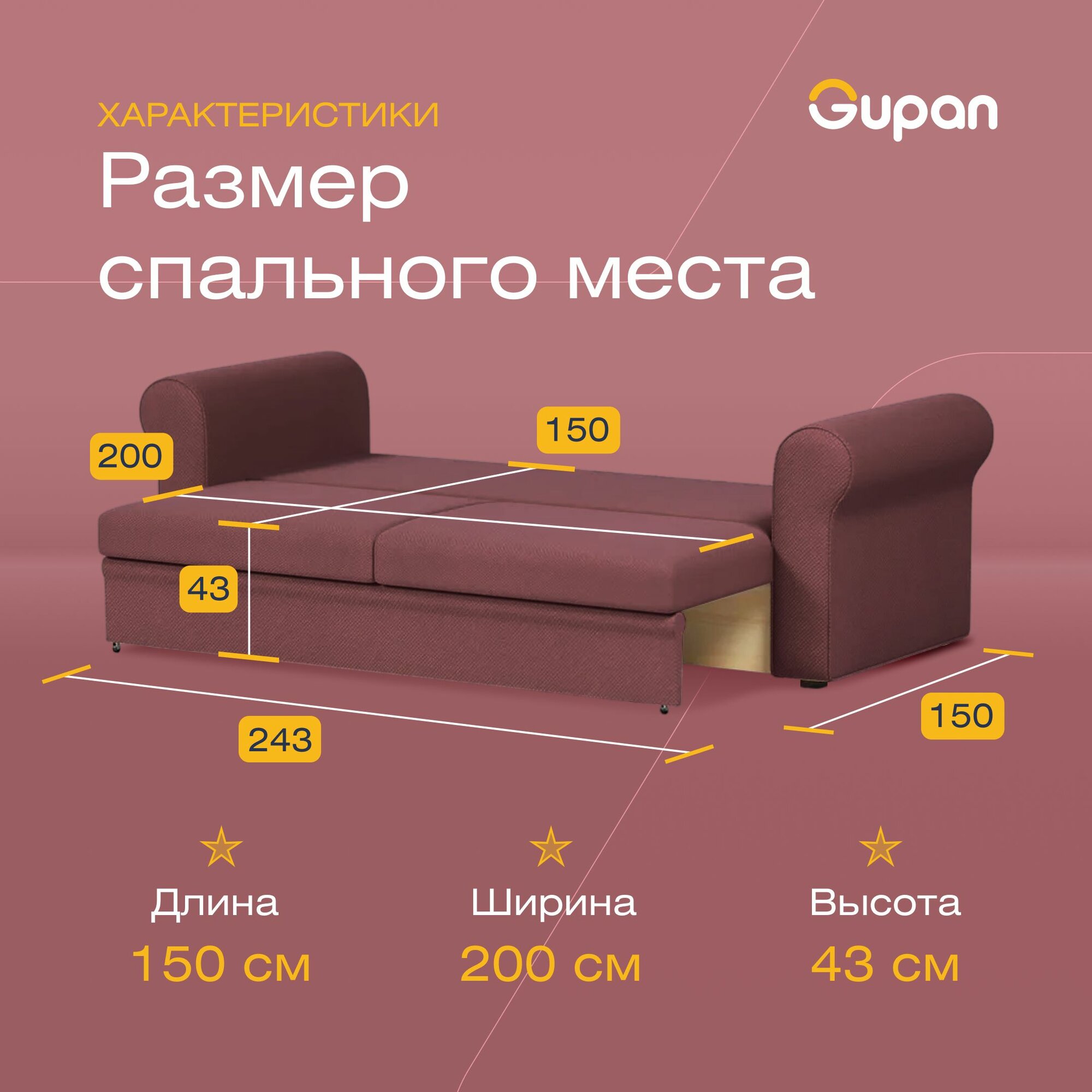 Купить Диван кровать Gupan Римини Велюр Amigo Dimrose, раскладной, механизм еврокнижка, беспружинный, с ящиком для белья