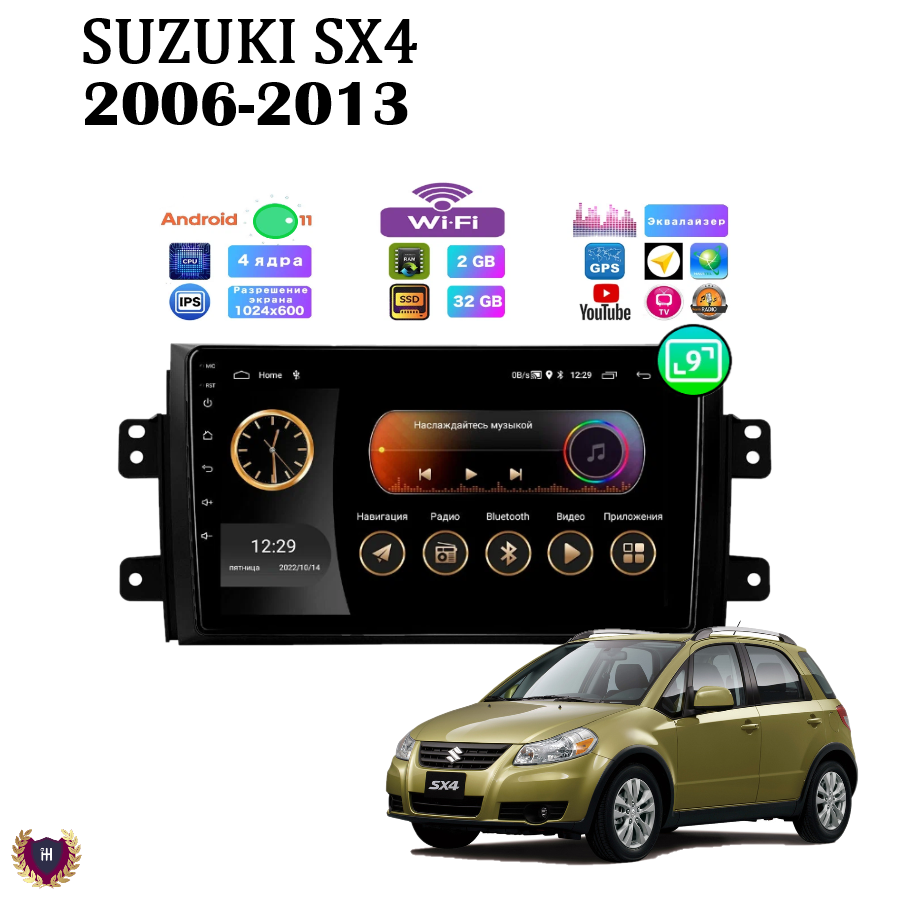 Автомагнитола для Suzuki SX4 (2006-2013), Android 11, 4/32Gb, Wi-Fi, GPS, IPS экран, Bluetooth, Hands Free, разделение экрана, поддержка кнопок на руле