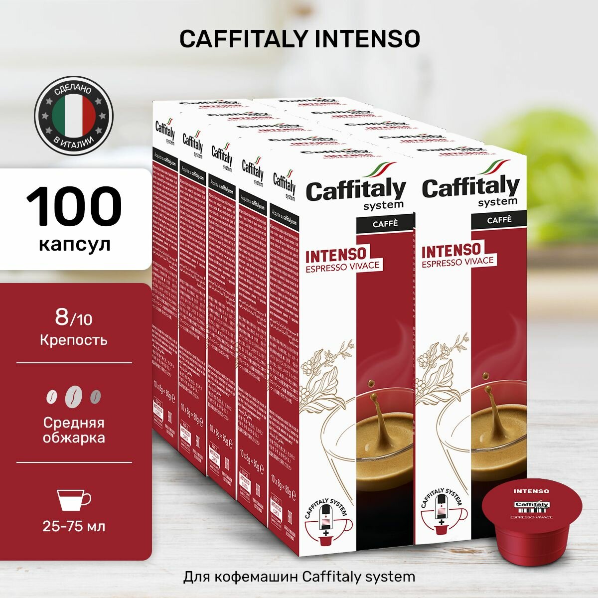 Купить Кофе в капсулах Caffitaly Intenso для кофемашины 100 порций эспрессо