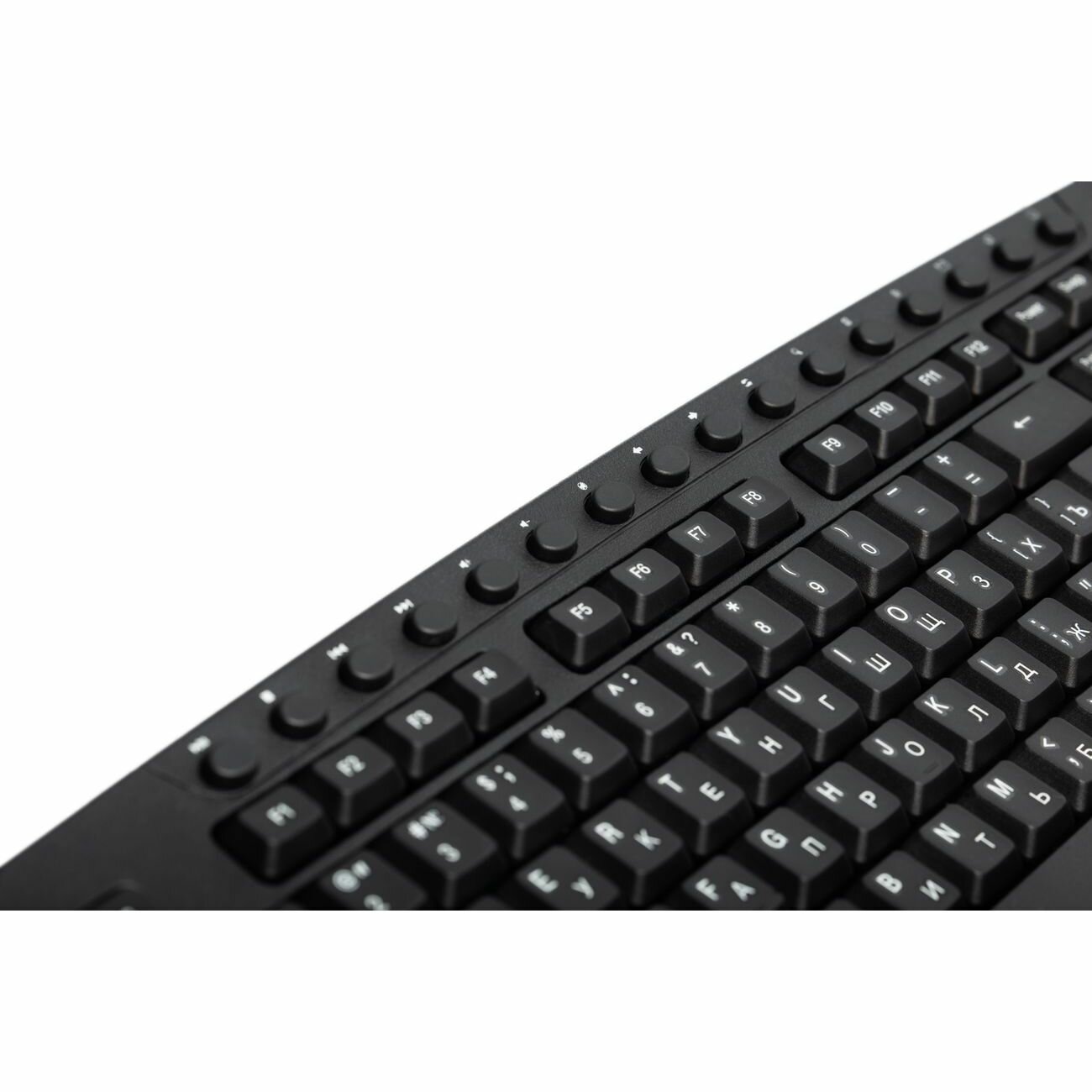 Занимает немного места на столе В тоже время в стандартные размеры уместилась целая строка клавиш управления компьютером (управление без мышки проигрывателем, звуком, перемещение по вкладкам браузера, вызовом различных окон и тому подобное). Ход клавиш мягкий, комфортный. |