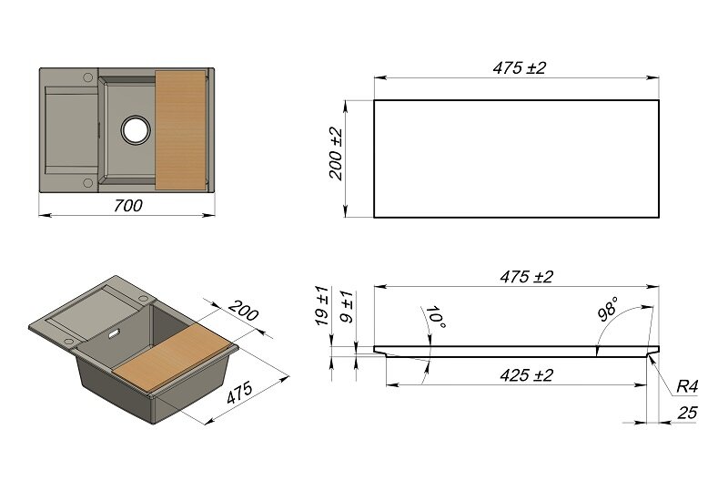 Кухоннай мойка GRANULA ESTETICA (5201, графит)