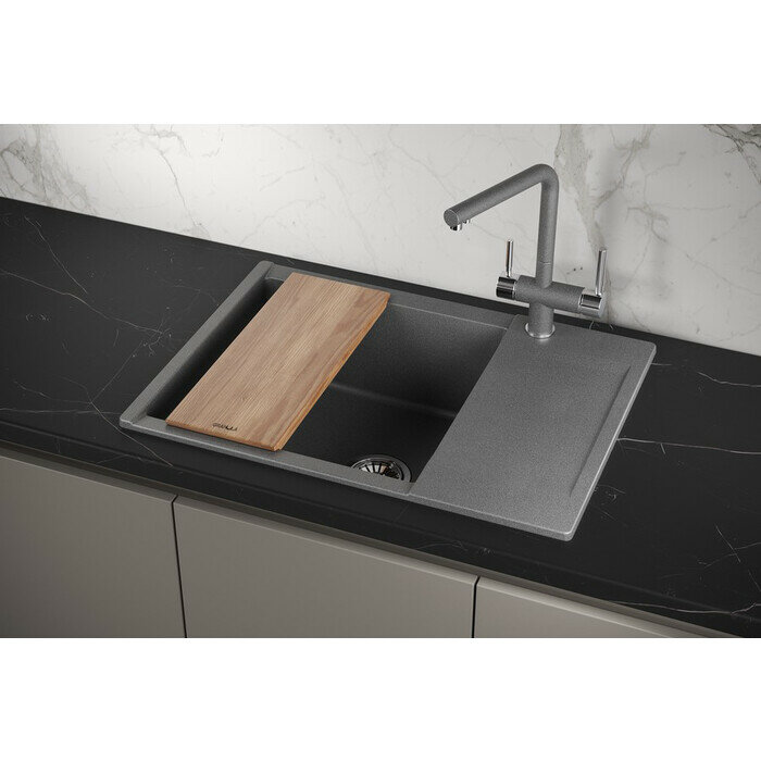 5551, графит (чёрно-серый), кухонная мойка, кварц