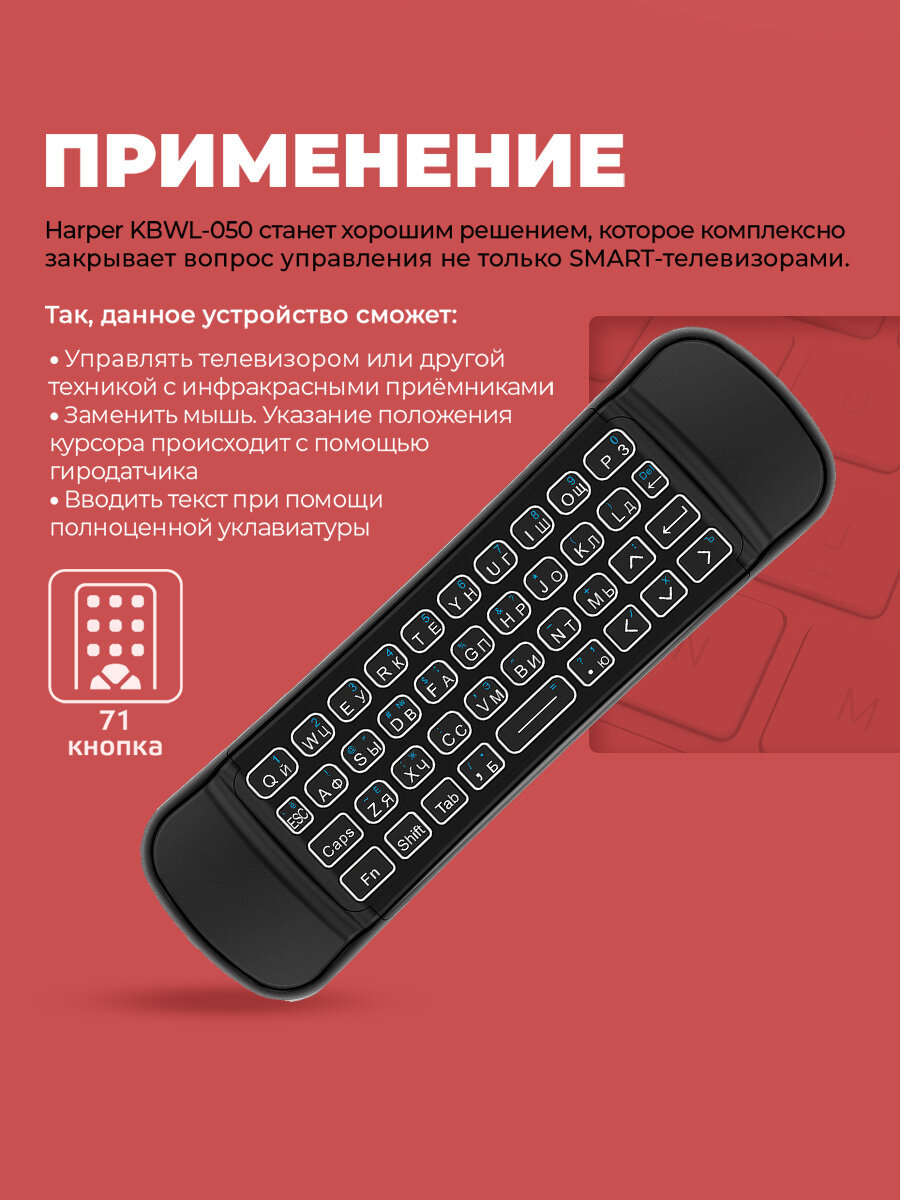 Беспроводная аеромышь клавиатура пульт HARPER KBWL-050 для смарт ТВ интересное: