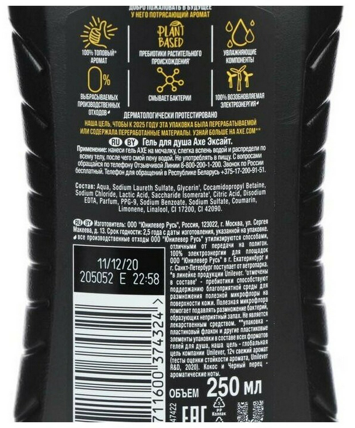 Axe Excite Гель для душа Кокос и черный перец 250мл