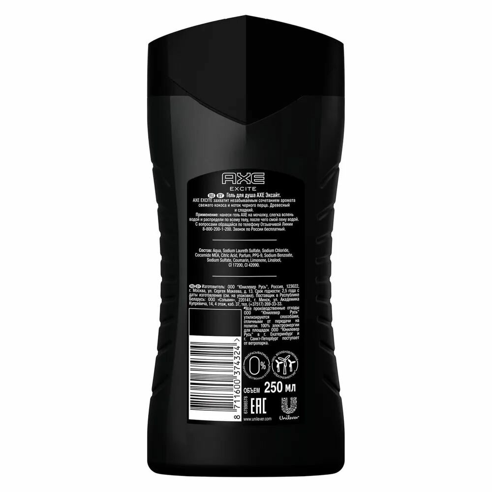 Гель для душа мужской AXE Excite, 250мл, Россия, 250 мл
